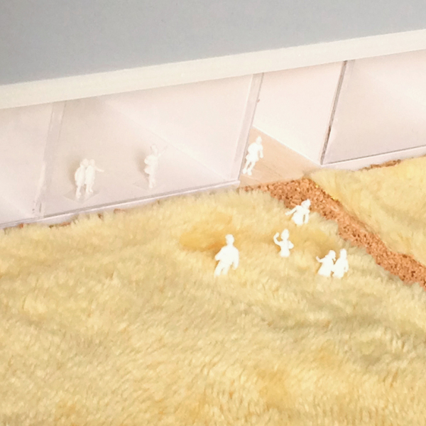 大阪のりんくうタウンには、埋め立てによる新市街と昔からある旧市街地との境目に幅19m程度の緑地帯が東西約4kmに渡って整備されている。しかし、この境目の緑地帯が新市街と都旧市街とを分けてしまっている。ここに図書館を主にした複合施設を設け、旧市街と新市街の人たちが、交流できる機会と場所となる建物を提案する。