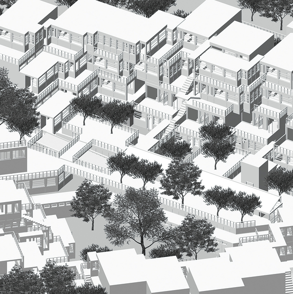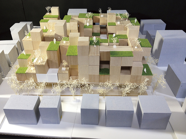 東京・神楽坂を対象地として、演劇の魅力が道行く人々に伝わるような劇場を提案しました。敷地を善国寺というお寺の裏手に設定し、「道」をキーワードとして神楽坂の特徴である石畳を施設内に引き込み、この土地に来た人にまち歩きの延長で訪れてもらえる場所としています。劇場は壁の一面以上をガラス張りとして公演の気配が外部に伝わるようにしています。