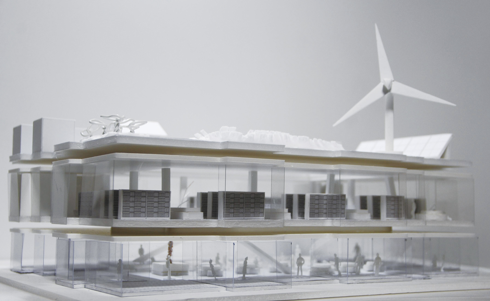 建物、住民が高齢化し、空室が目立つ、築50年を超えた団地の再生を行いました。この団地の財産である緑道を中心に、「生活により生れる 空間機能の創造」が行われる事を目指し、減築・増築によって作られる新たな空間に人々の生活を呼び込み、生活中の偶然性による新たなイノベーションを受け止める器として機能するよう計画しました。