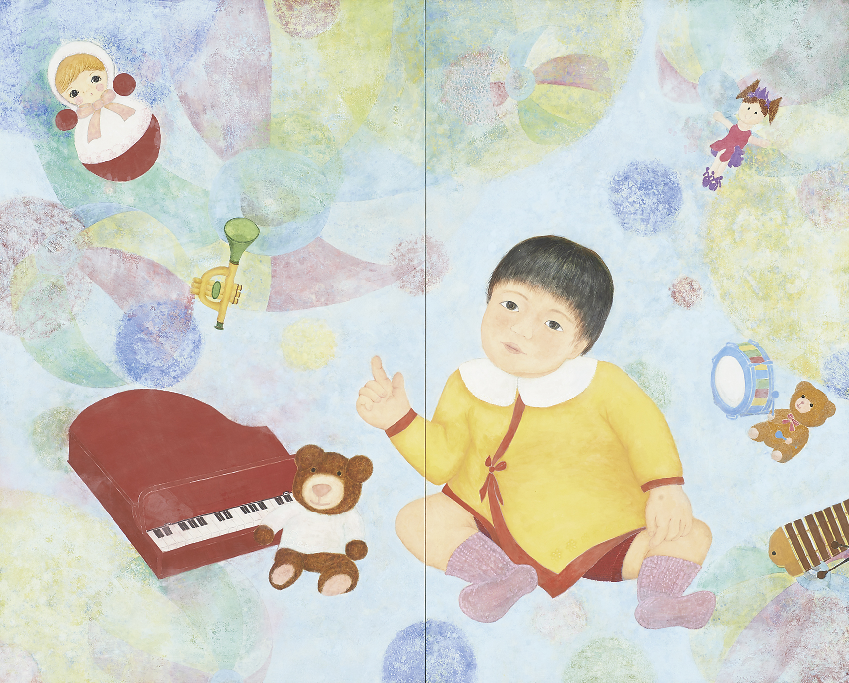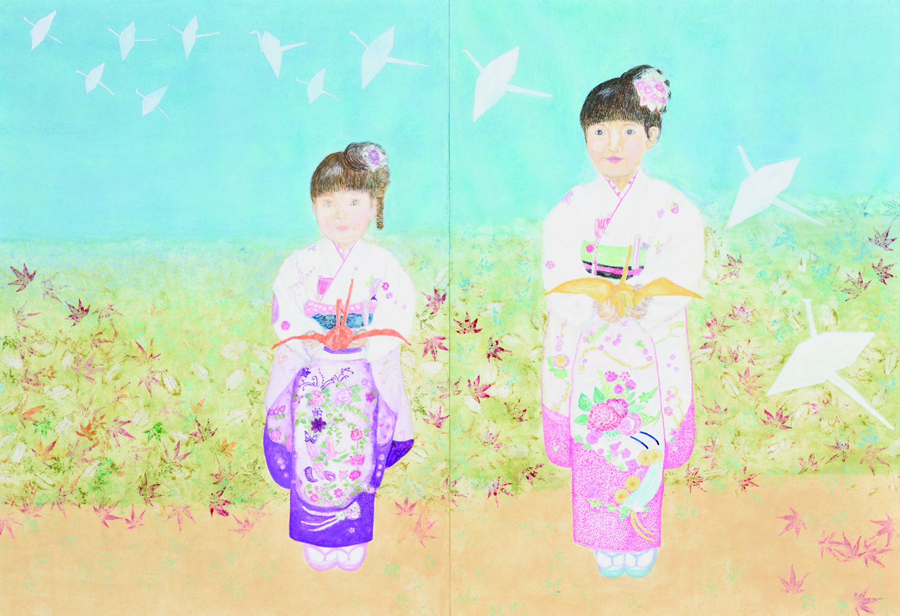 紙本/絵具・水干絵具・墨・アクリル絵具・箔・マニキュア・レース・リボン・アクセサリー