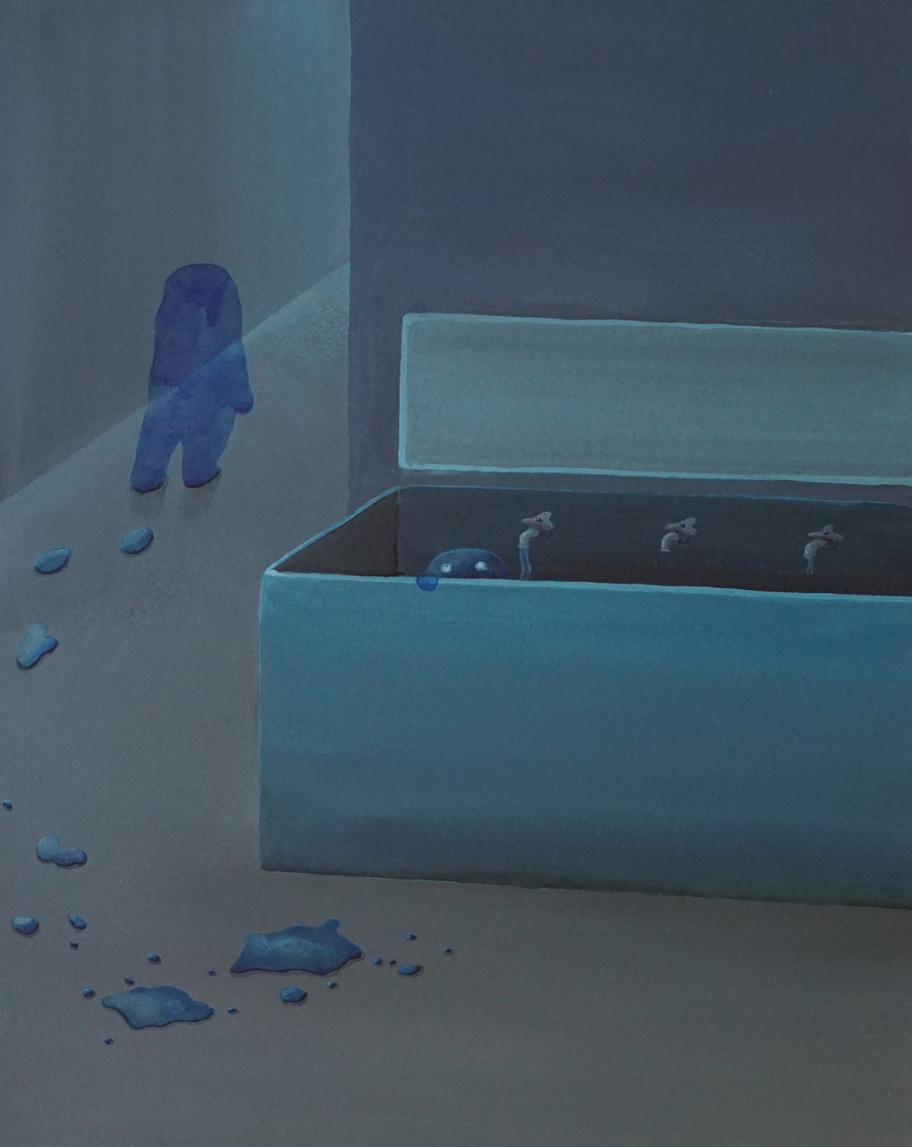 無関係だと思っていたことが、どこかで繋がっている可能性があること。隠していることや無意識のうちに眠っている本心など。それらに気がつく時の心の中の矛盾や閃くような瞬間にある淋しさや少しの優しさや何かが起こるような感覚を、一つの空間世界として表現したいと考えました。