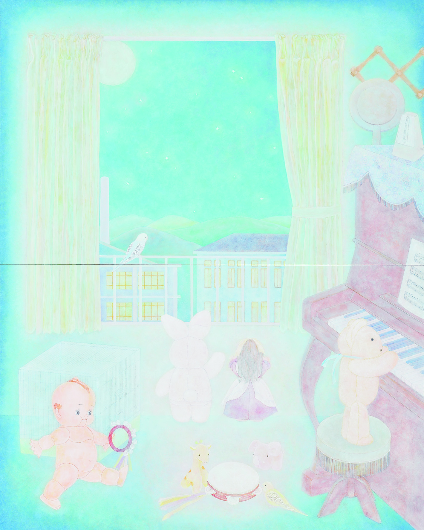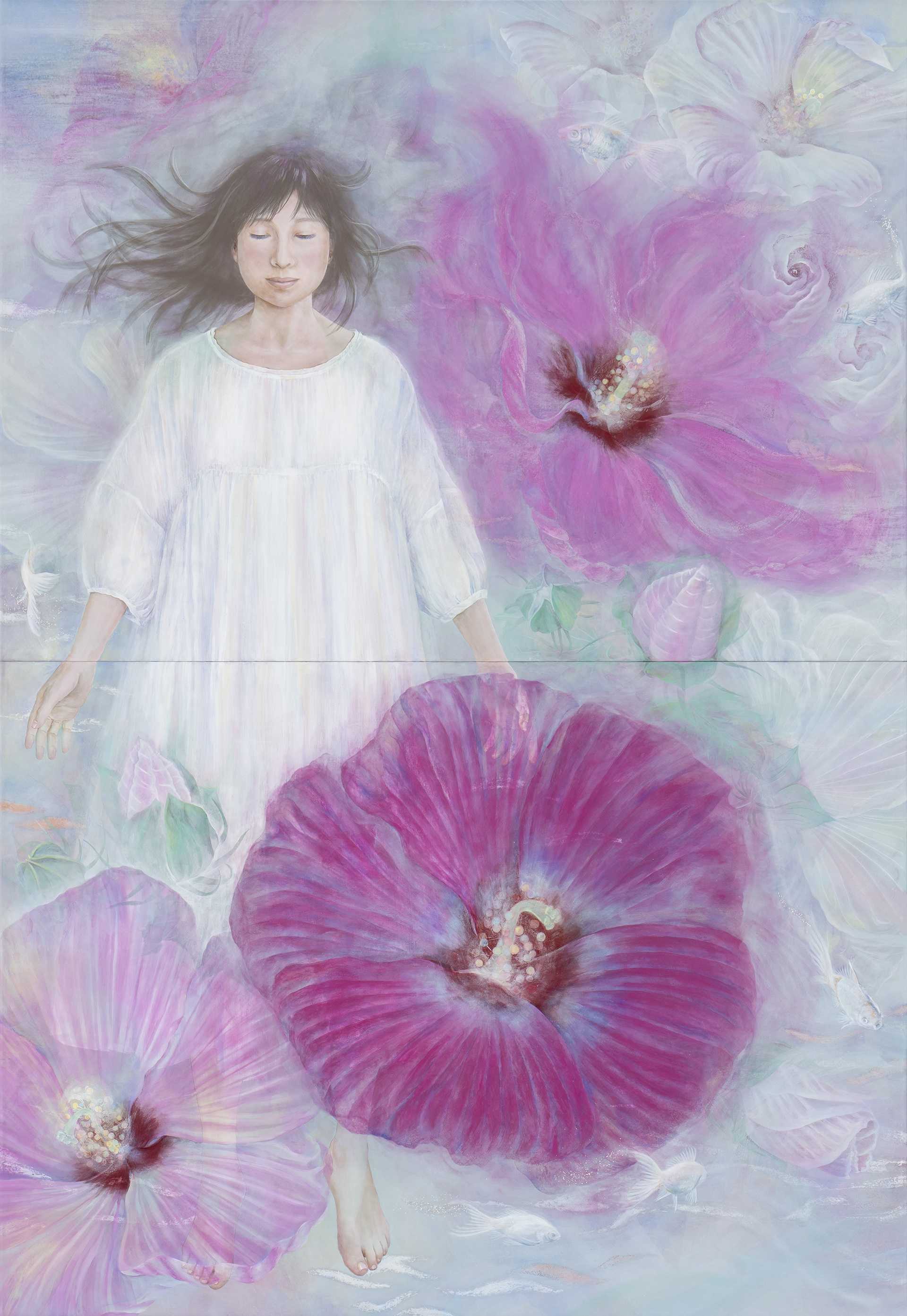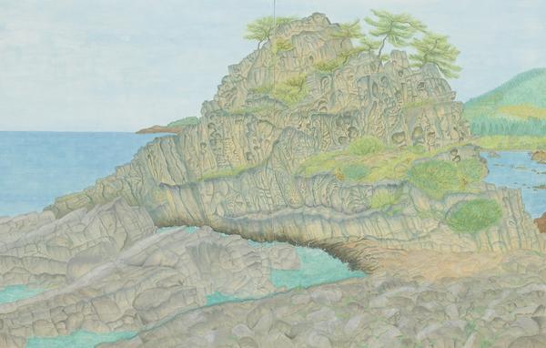 クメール王朝の遺跡であるカンボジア・アンコール遺跡群の地歴と石の文化に魅了され、アンコール・ワット、アンコール・トムの建造前に造られたベンメリア遺跡を研究。現存する神々しい空気感と荘厳な情景を融合した。地石を用いて様々な技法を実験し、多種様々な粒子と箔とを混合させ 生命力の漲るアンコール遺跡群の壮大な空間を表現した。