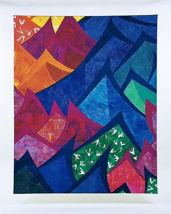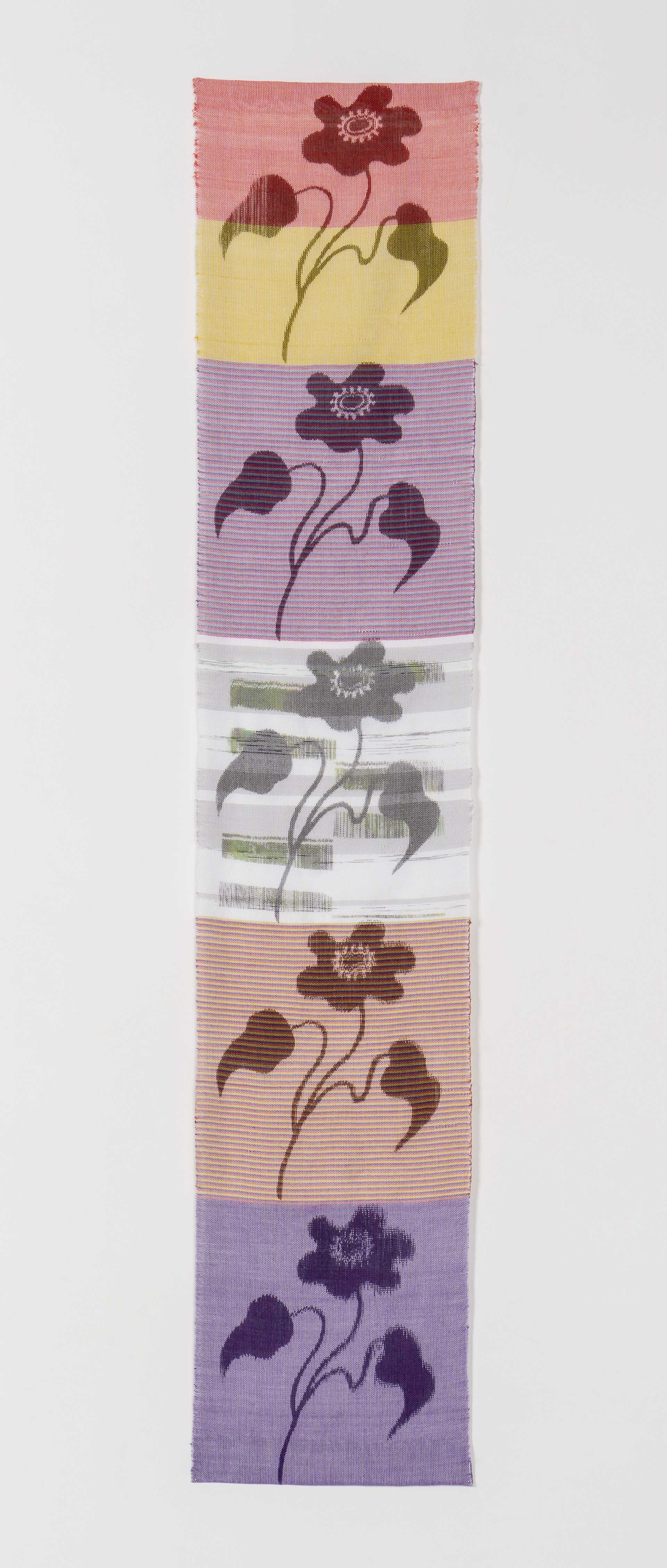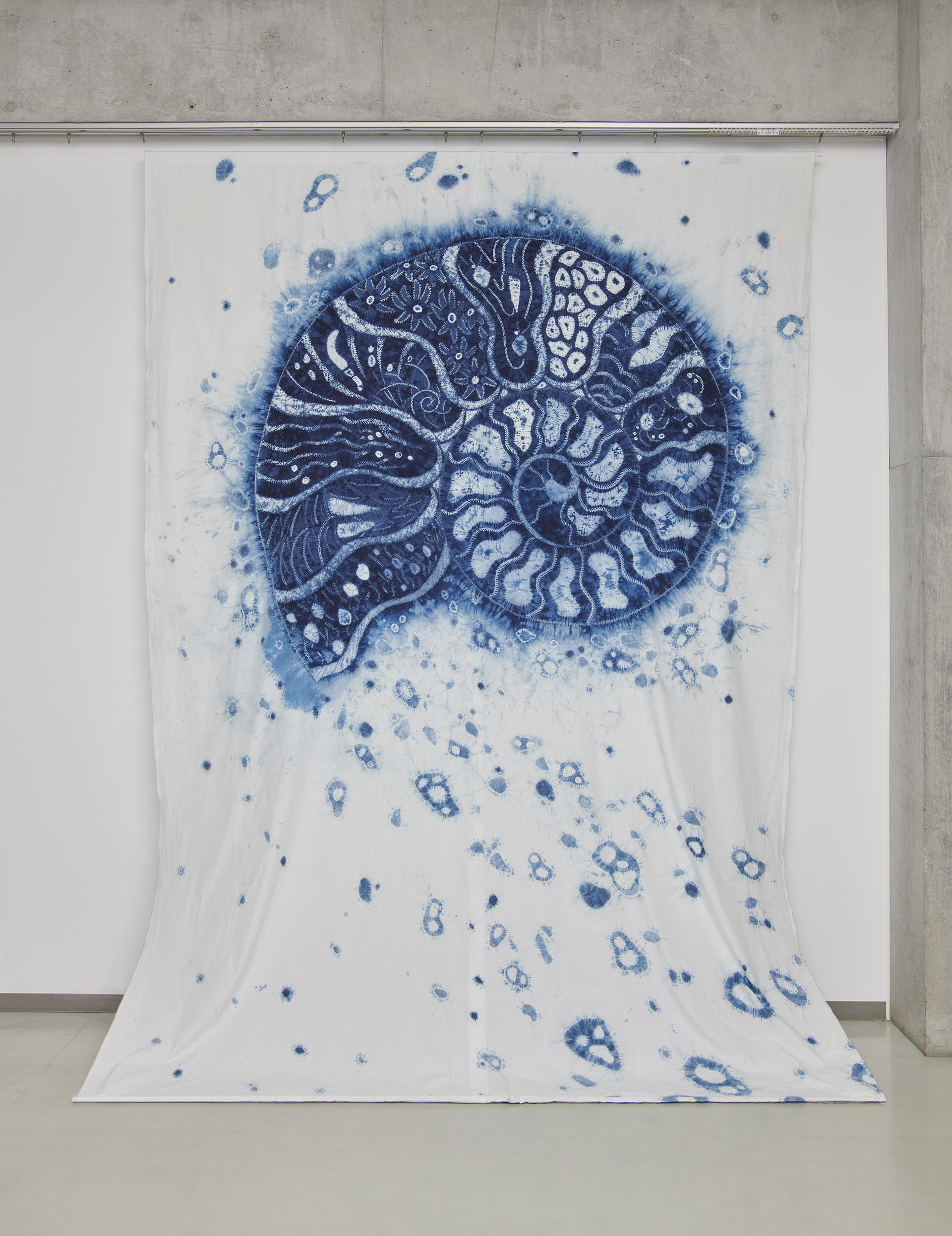 鎌倉にある明月院は「紫陽花寺」として知られており、梅雨の季節に澄んだ青色の紫陽花が目を楽しませてくれる。この青色は「明月院ブルー」と呼ばれており、経糸と緯糸の重なり合う色で表現したいと思いました。