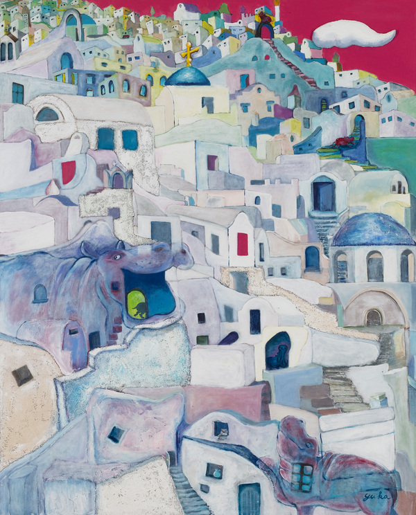 好きな色はいろいろあるが特に赤が好きである。植物園で見た赤いカンナに感動し、卒業制作にこのカンナの花を描いてみた。赤いカンナの花は見る人を圧倒し美しい。赤色にも多種多様な種類があるので、今後一層赤色の持つ魅力を、絵を描くことによって探究していきたく思っている。