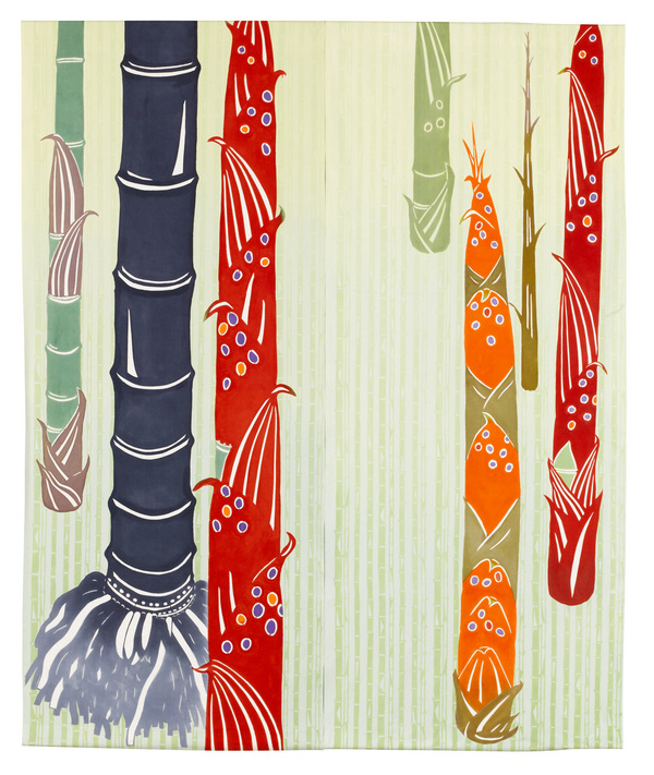 冬の夕暮れの移り変わっていく空の様子を表現しました。絣の部分は夜が空から降ってきて地上に積もり暗くなっていくのをイメージしています。そして紫色から桃色、そして黄色へと変化する空の色は一段一段、色を変えて織りました。