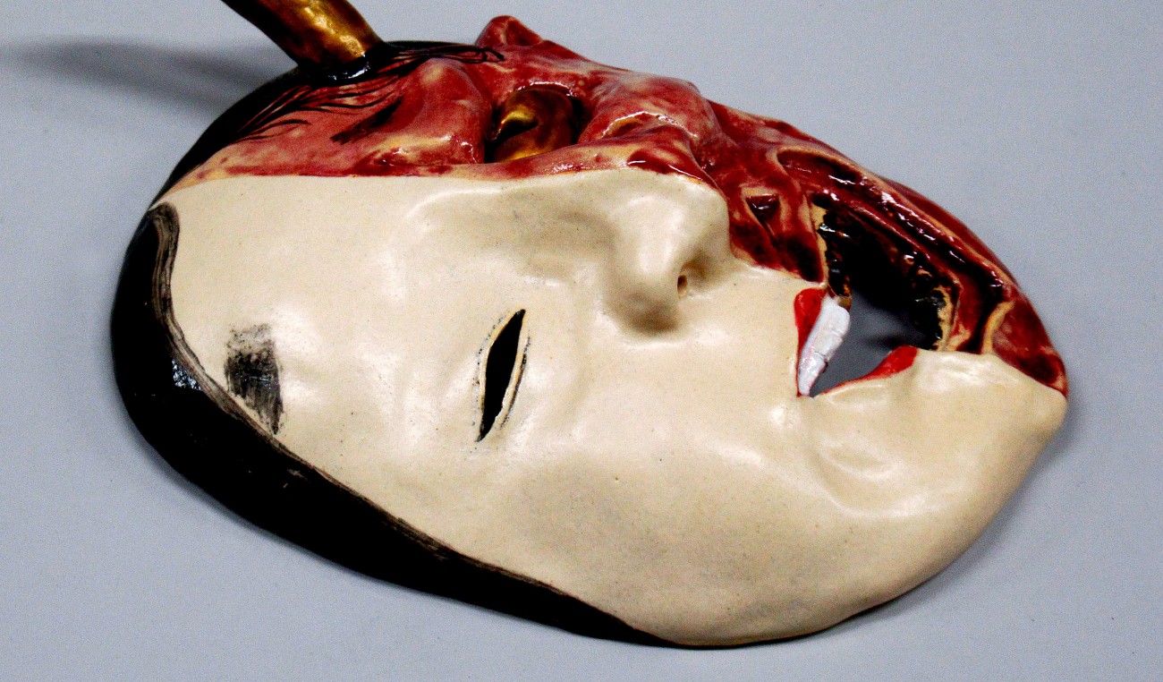 木製の能面を土で制作すると、どのような表情となるのか興味をもったのがきっかけである。