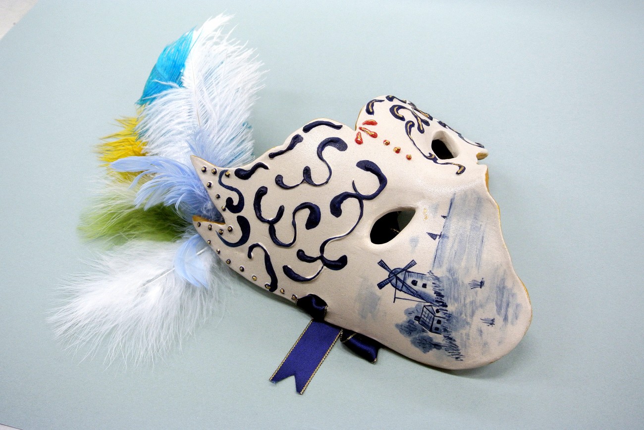 「風車」は半磁土を使用。頬に広い面を作りそこに下絵付けでオランダの風車を描いた。