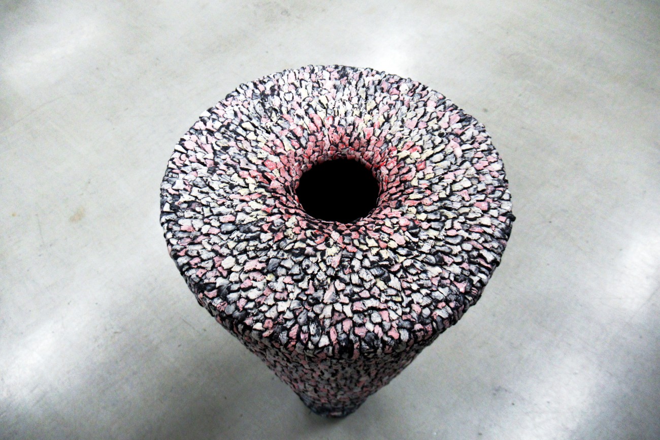 多種多様な価値観を持つ個性のピースが調和したときにうまれる創造を表現した。一つ一つのピースは、色も、色のつき方も、ピースの断面も、釉薬の塗り方や厚みも異なる。ピースの違いを楽しみ、それが調和した姿を楽しみ、具体と抽象を行き来し没頭したのちに新たな創造へと導かれることに意識を委ねてほしい。魚の鱗、マスキングテープアートから着想。