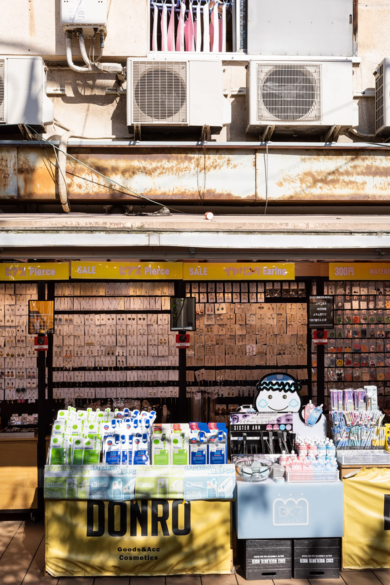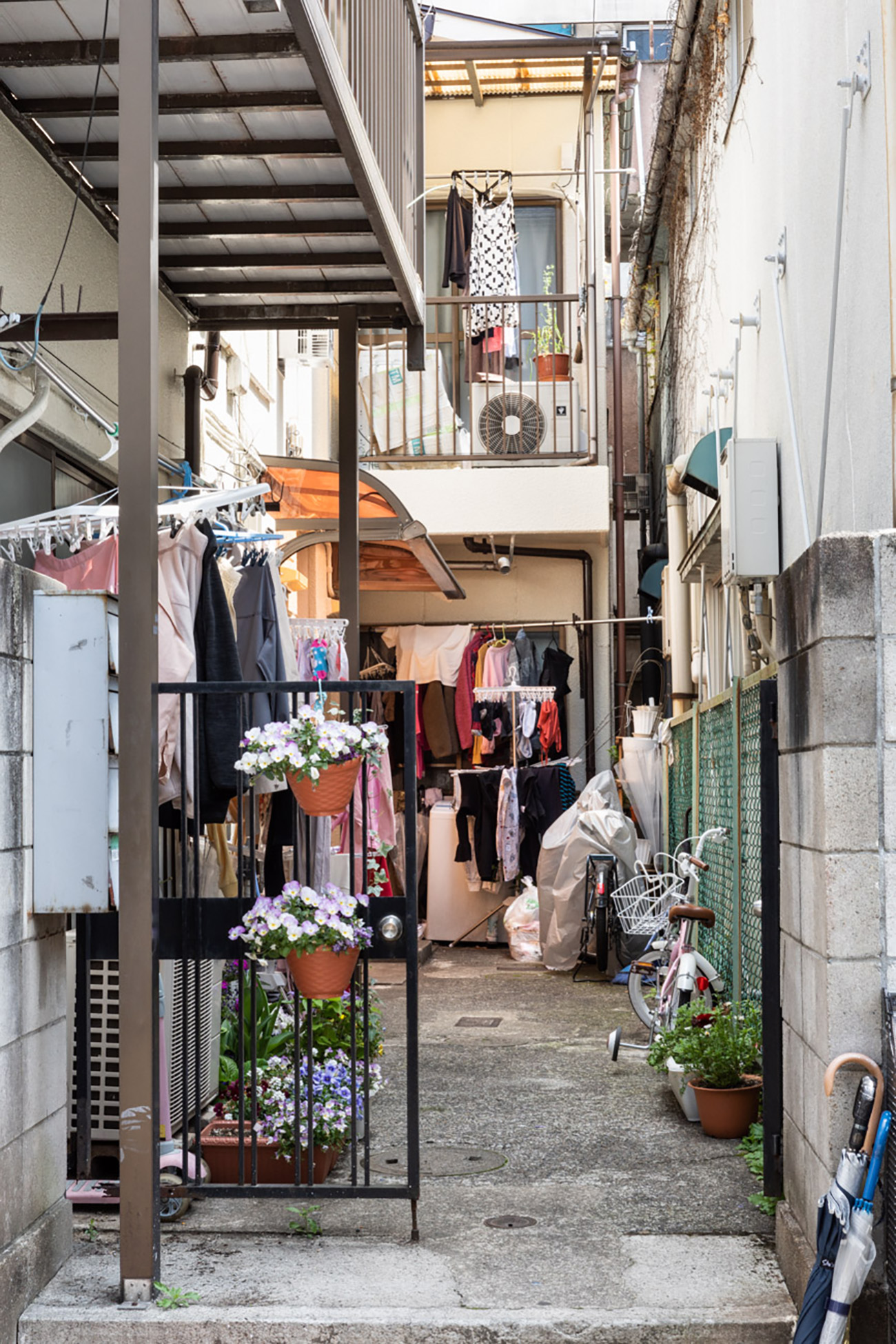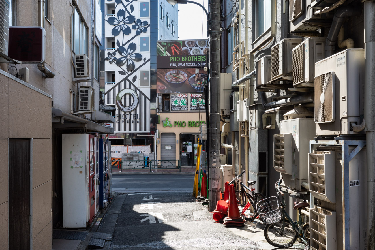 隣町には、外国の店舗が頻繁に入れ替わる若者・観光客の多い繁華街と、古く奥行きのある住宅や商店が同居・混在している。そのディテールやコンポジッションには、自らの生活圏でありながら、他の街にはない個性・非日常性が見出され、そこに魅力や意外性を感じる。そこで、自宅から隣駅までのエリアに撮影場所を限定し、人物を排しながら、目の前に広がる情報・痕跡をニュートラルに写し取り、これを丹念に収集していくことにした。肉眼では知覚しなかったモノが写りこみ、銘のないパブリックアートを思わせる存在に気づく。
