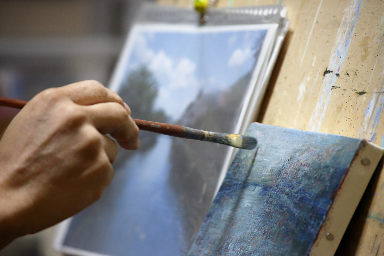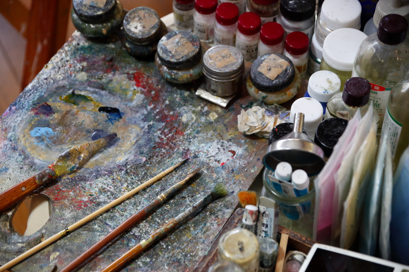 その後、個展・グループ展等で作品は見続けていますが、制作については知らないことばかり。その過程を知りたくなり、話を伺ってみると毎日の生活の中で、まさに「絵を描くこと」がライフワークになっていました。