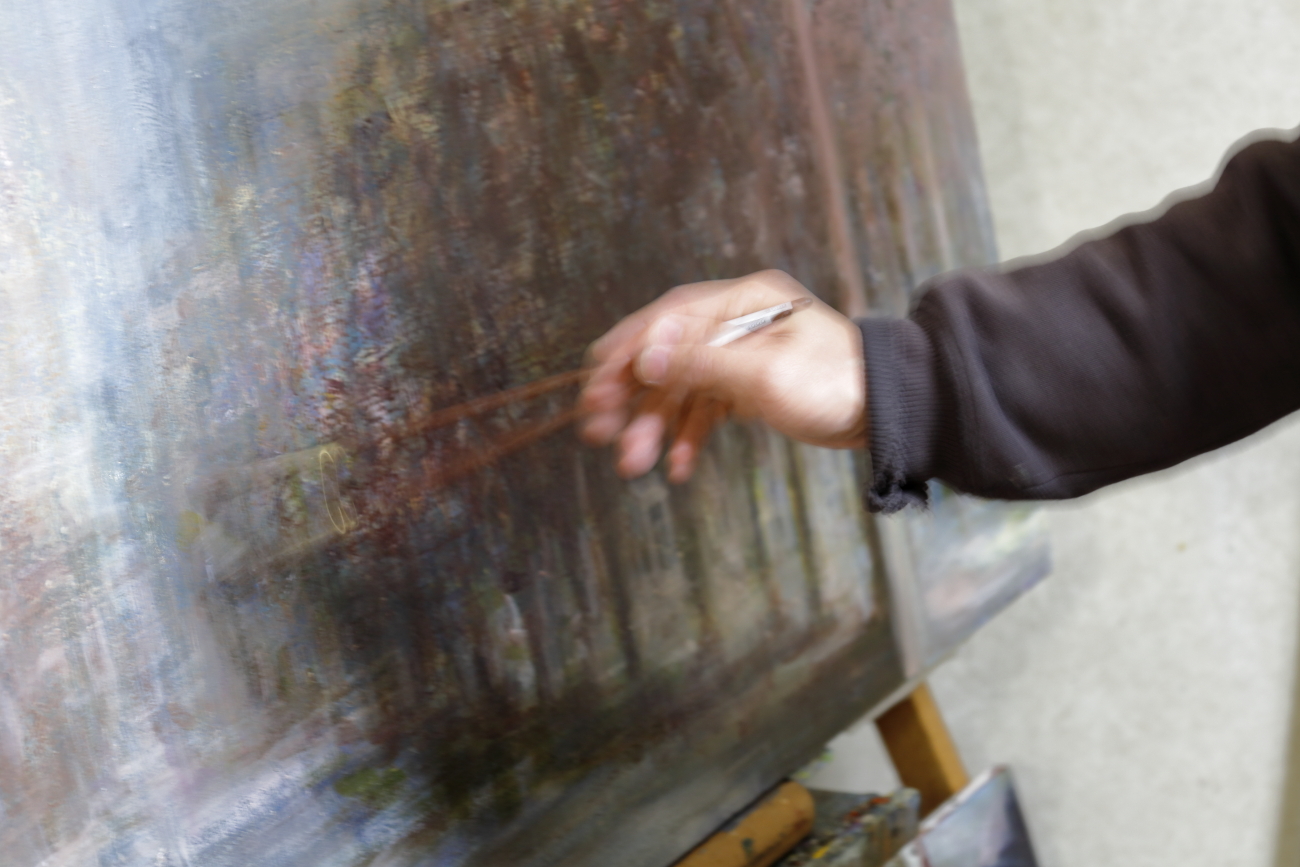 絵画の公募展で、同じ通信の洋画コース学部生だった彼とその作品に出会い、絵画を視る楽しさを覚えました。彼は大学院を修了、私は再入学、付き合いも長くなっていきます。