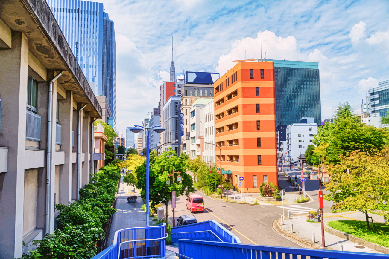 青い空と木々の緑が心地良いアニメのワンシーンのような都市空間を楽しんでいただけたら最高である。