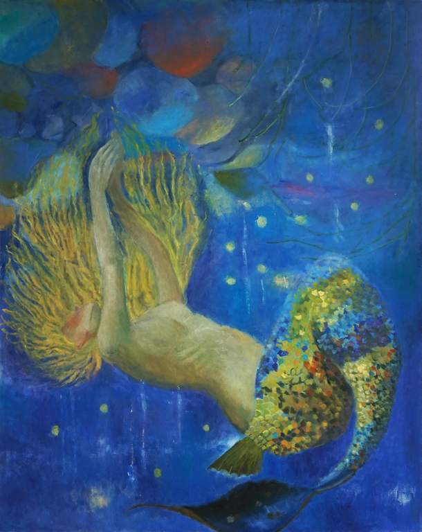 海は潜在的にも身近な存在であり、人間はもちろんのこと、地球上の全ての生き物にとって欠くことができないものである。その空間は、宇宙的で神秘性に覆われている。そこから、インスピレーションを得て、私の小宇宙というテーマとした。古来から生物は、海から生まれてきたといわれている。人間は死ぬと、「土に帰る」というが、でも本当は、「海に帰る」と言った方が、適切かもしれない。海は、森羅万象を生み出す母なる存在であり、生物のゆりかごである。そして、地球に存在するかけがえのない小宇宙である。