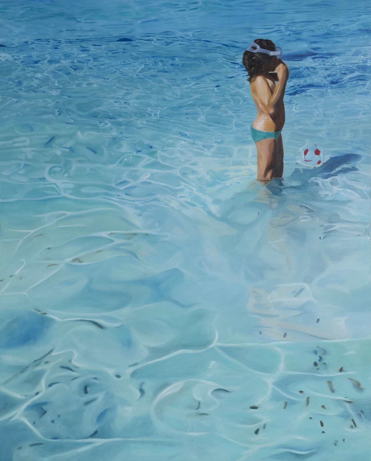 海の中に佇んでいる娘は、海の先を見ている。果たして私と同じような気持ちで海が美しいと感じているのだろうか、それとも全く違うことを感じ、考えているのだろうか。娘が見ている先にある果てしなく続く海、眺めはどのようなものだろうか。親と子は血が繋がっているが、見ているものや考えていることは、それぞれ個々で違う。美しい海の上で、親である私と子である娘の想いが交差する。