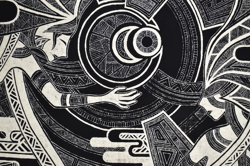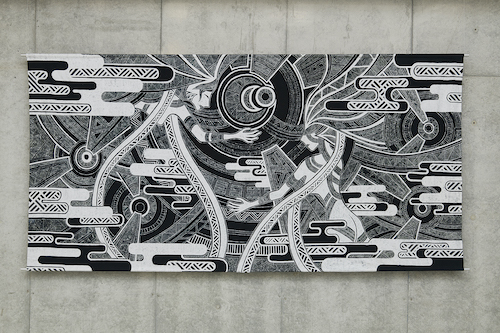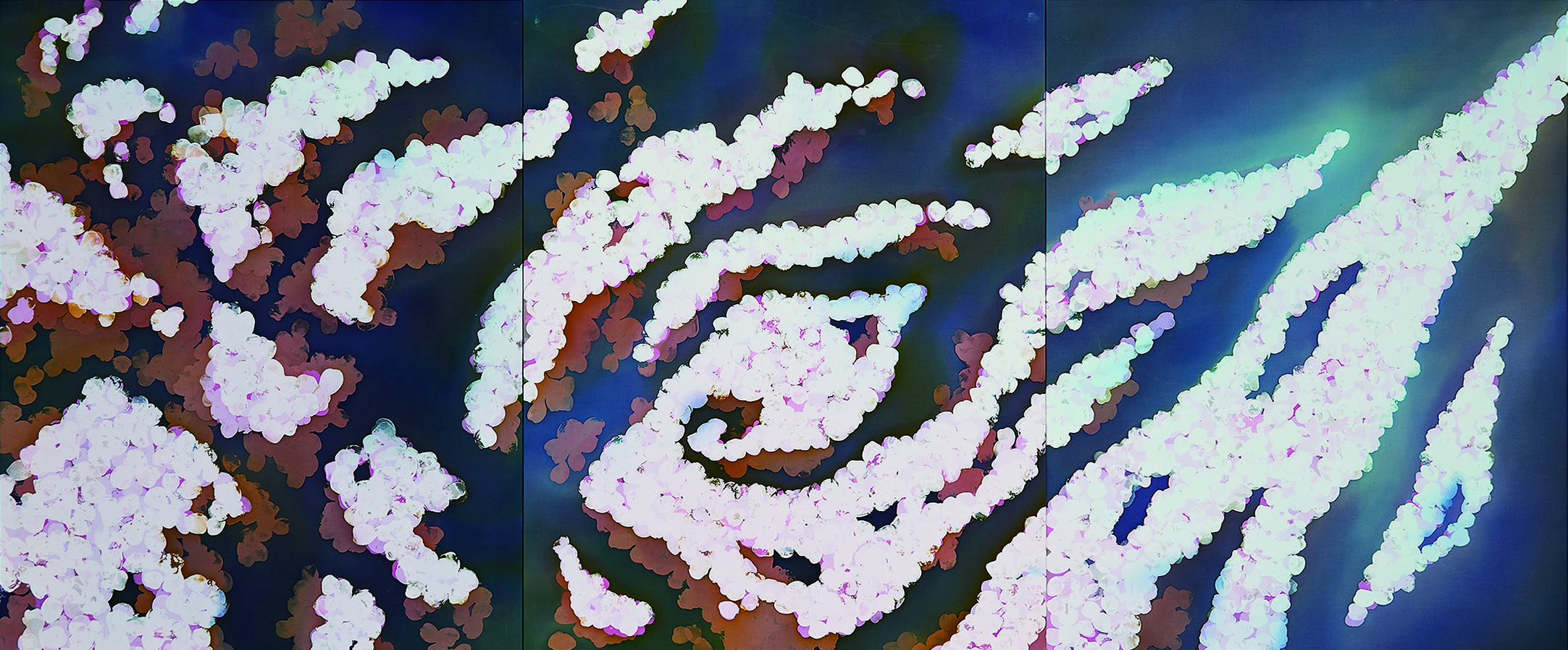中国の少数民族である苗族の蝋染にその可能性を見出し、蝋で描いた『線』に残る手の移動や強弱によって表出する痕跡、その痕跡を有する『線』の集合体としての面を、蜜蝋とマイクロワックスと松脂を混合した蝋と銅板を加工して制作した蝋刀で支持体に残した。