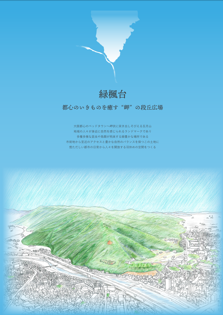 大阪都心のベッドタウンへ岬状に突き出しそびえる五月山