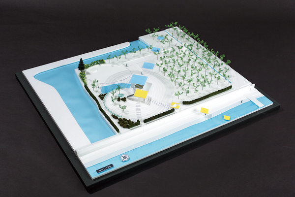 本計画では、水路に加えて、壁泉・滝・水浴びのできる池等、水の感触、匂い、音を身近に感じられる水景施設を充実させ、親水公園としての機能向上を図る。