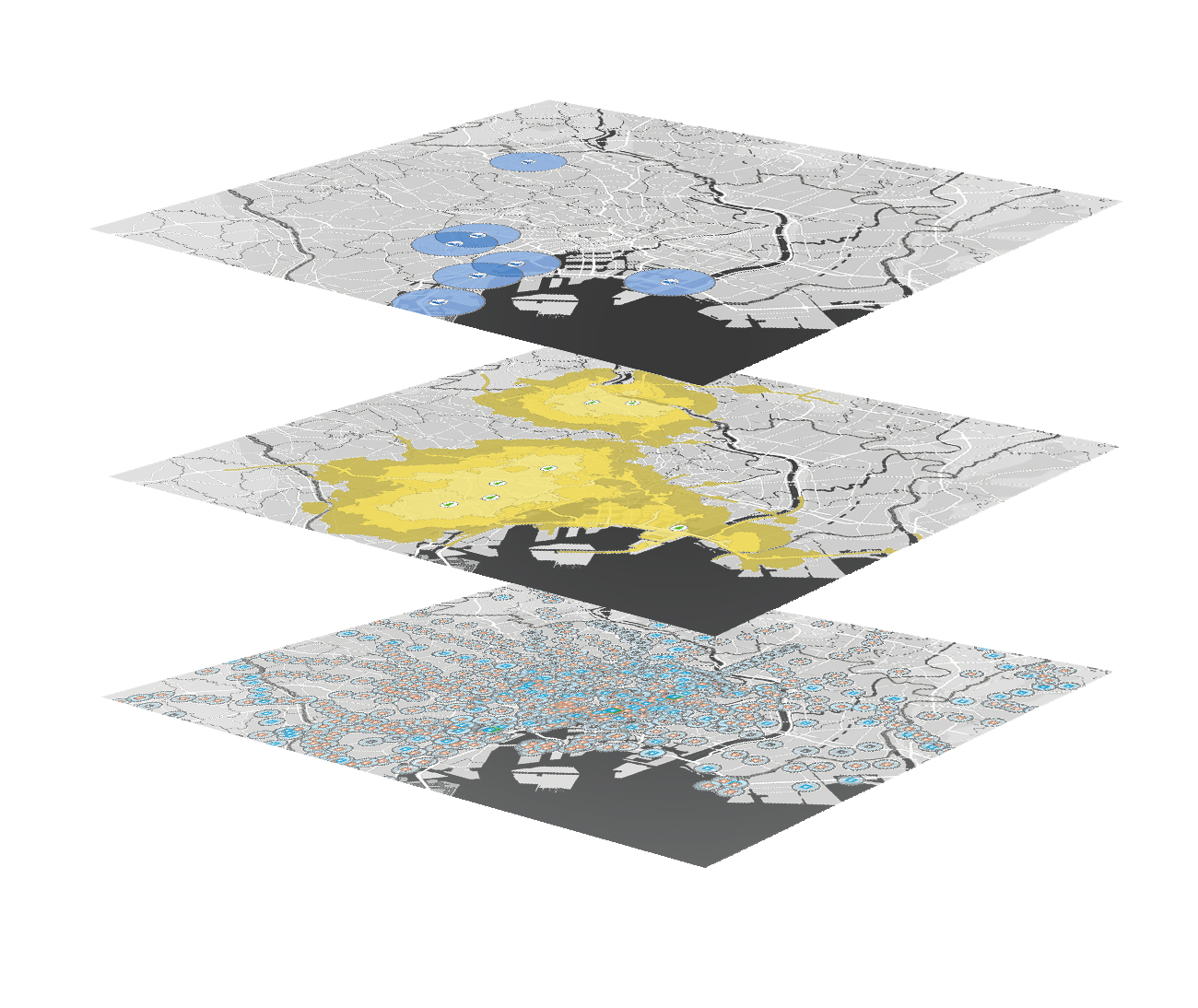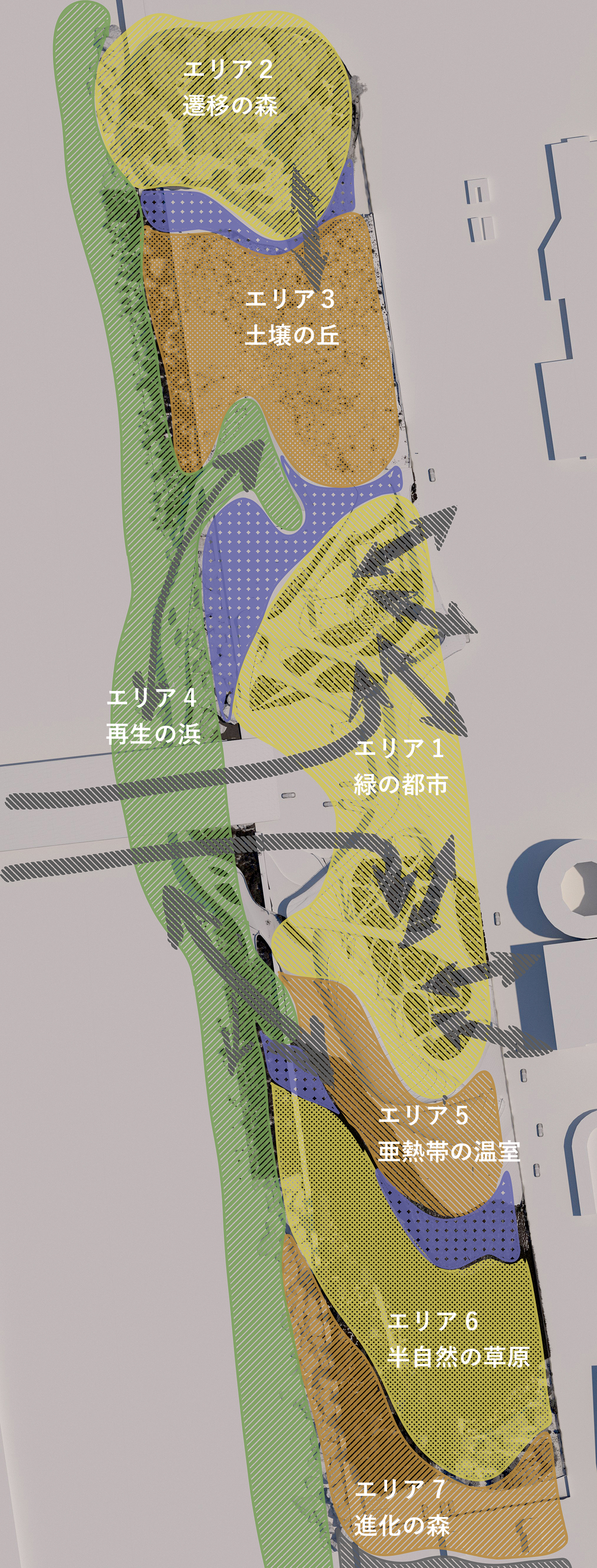維管束をモチーフにした同心円状に広がる7つのゾーニング