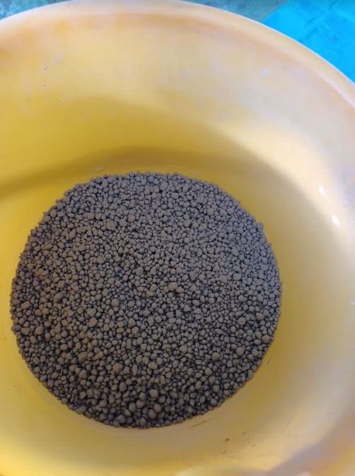(写真6)おおよそ粒の大きさがそろった湿り気を帯びた「ぬれ灰」が完成
