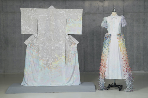 ほどいてみるまで仕上がりがわからない絞り染め、一期一会の模様に出逢える墨流し染め、どちらも想像通りにいかない面白さに魅了されました。絞り染めの浸染では天然染料を使用し、環境や人体への負荷を最小限にし、自然の草木で染める喜びを味わい、価値ある日本の伝統工芸を世界へ、後世へ伝えてゆきたいという想いを込めて作りました。