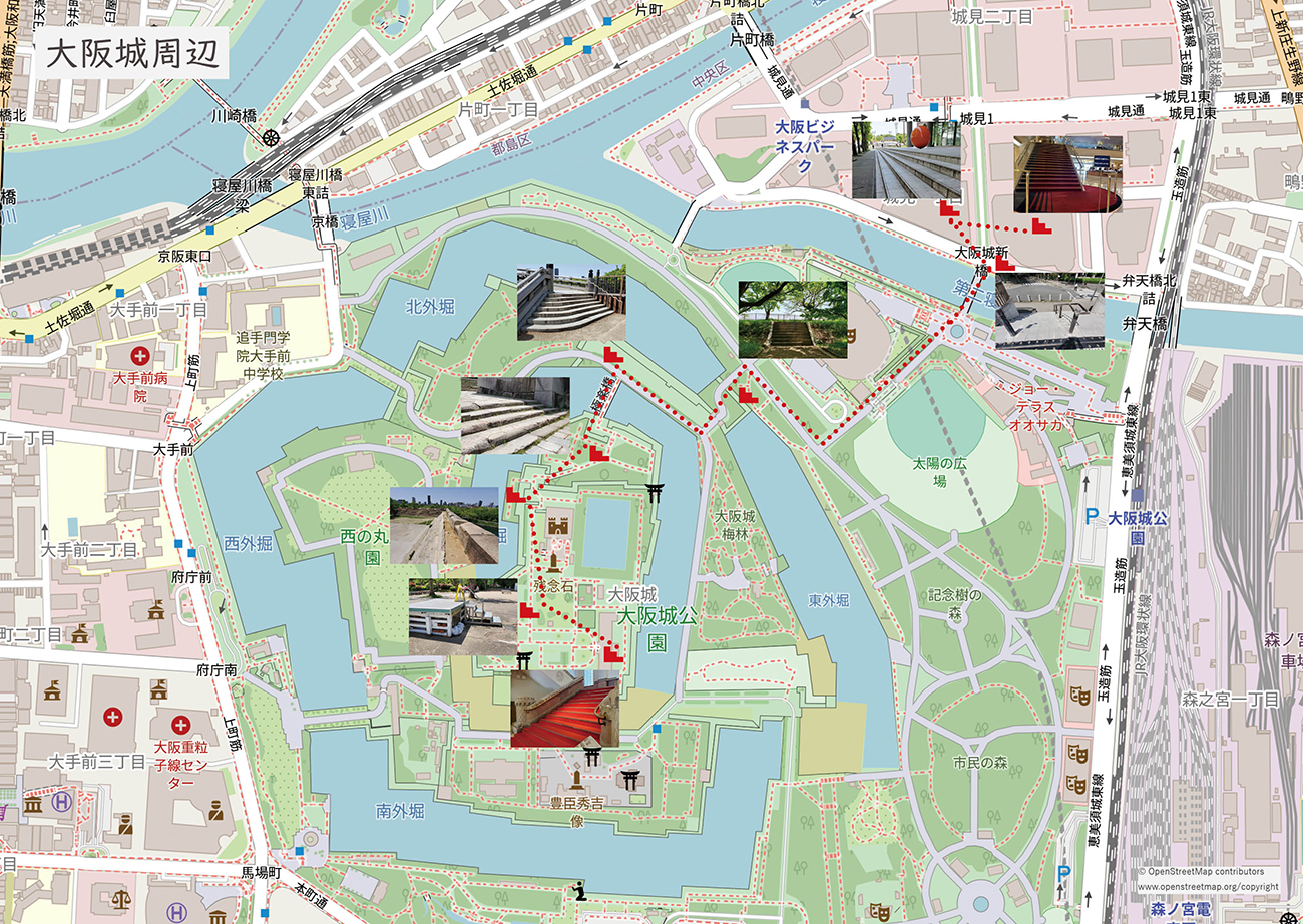 よみもの《階段で語る大阪》第Ⅲ章 「大阪階段散歩モデルコース」は、大阪市のおススメ階段を巡る散歩コースを、感想を交えて紹介します。 「大阪城周辺」「中ノ島周辺」「天保山周辺」などを掲載