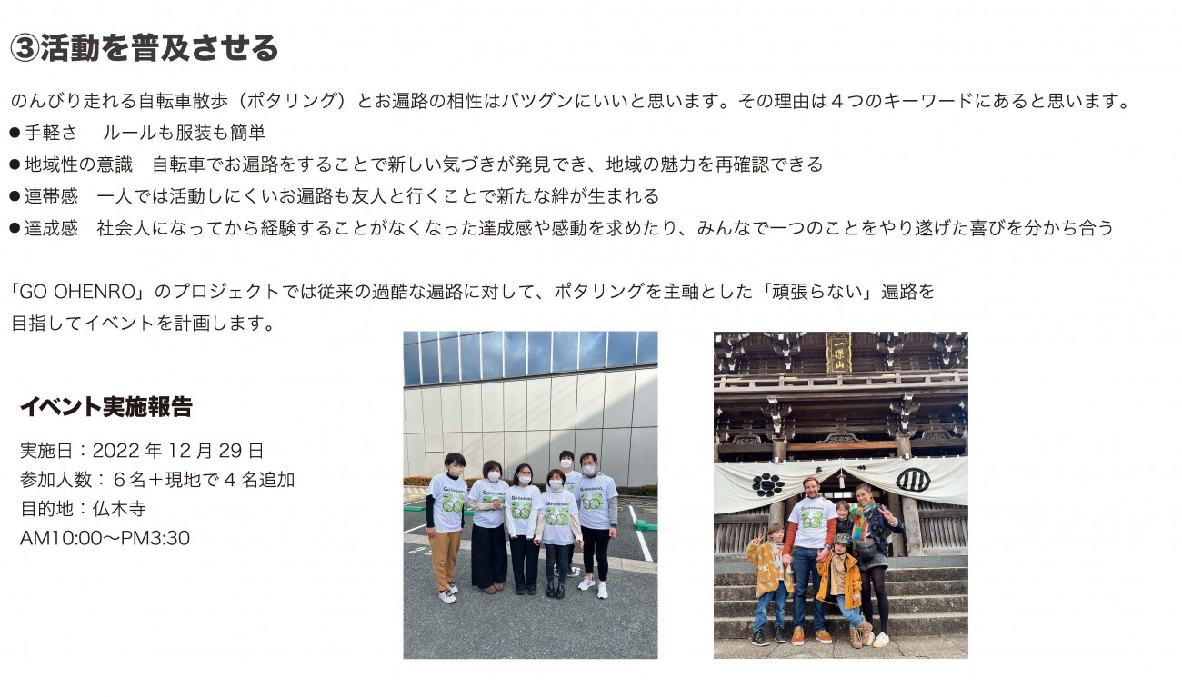GO OHENRO -自転車を活用することでお遍路文化の普及を目指した活動-
