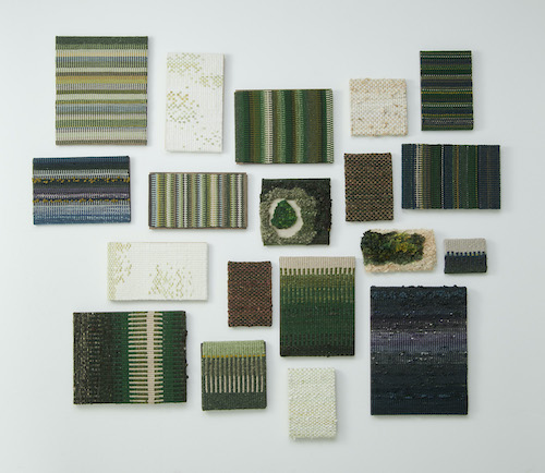 この作品は幼い頃に祖父母と過ごした庭がテーマです。その庭は苔生し、祖母と拾った白木蓮、縁側に座る祖父、季節の木々に囲まれ、光の変化や時の色、全てが私の心の原点です。作品は染色羊毛のブレンドで色糸を紡ぎ、異素材を組み合わせながら1つ1つの記憶をパネルのピースにしています。全てを広げた時に思い出の庭になる様表現しました。