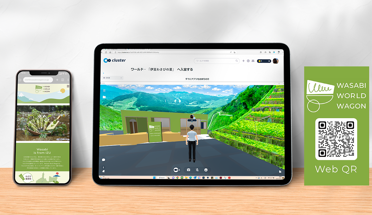 日本におけるインバウンド需要は、日本の経済を支える規模になっており、地域経済の活性化になっていることからも「伊豆わさび」を世界に積極的にアピールしていく必要があります。コロナ禍で旅行が難しくなった一方で、メタバース空間といった世界中どこにいても繋がることができるデジタル空間上の疑似体験的なものが世界のトレンドになっています。利用者は少なくとも新たな試みの一つでもあり、日本人でも知らないわさび田や伊豆の自然を見て回れるような体験型デジタル空間やメタバース上のイベントを通じて、わさびや伊豆への理解や興味を促進することができます。また、「伊豆わさび」の認知度向上や理解促進、ブランドやプロダクトの発信を目的に多言語のWeb も用意します。