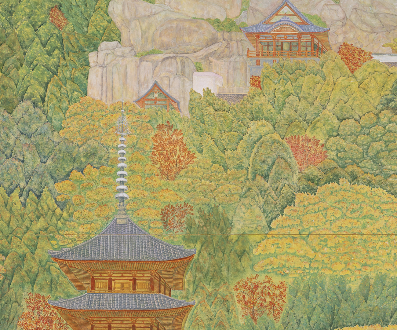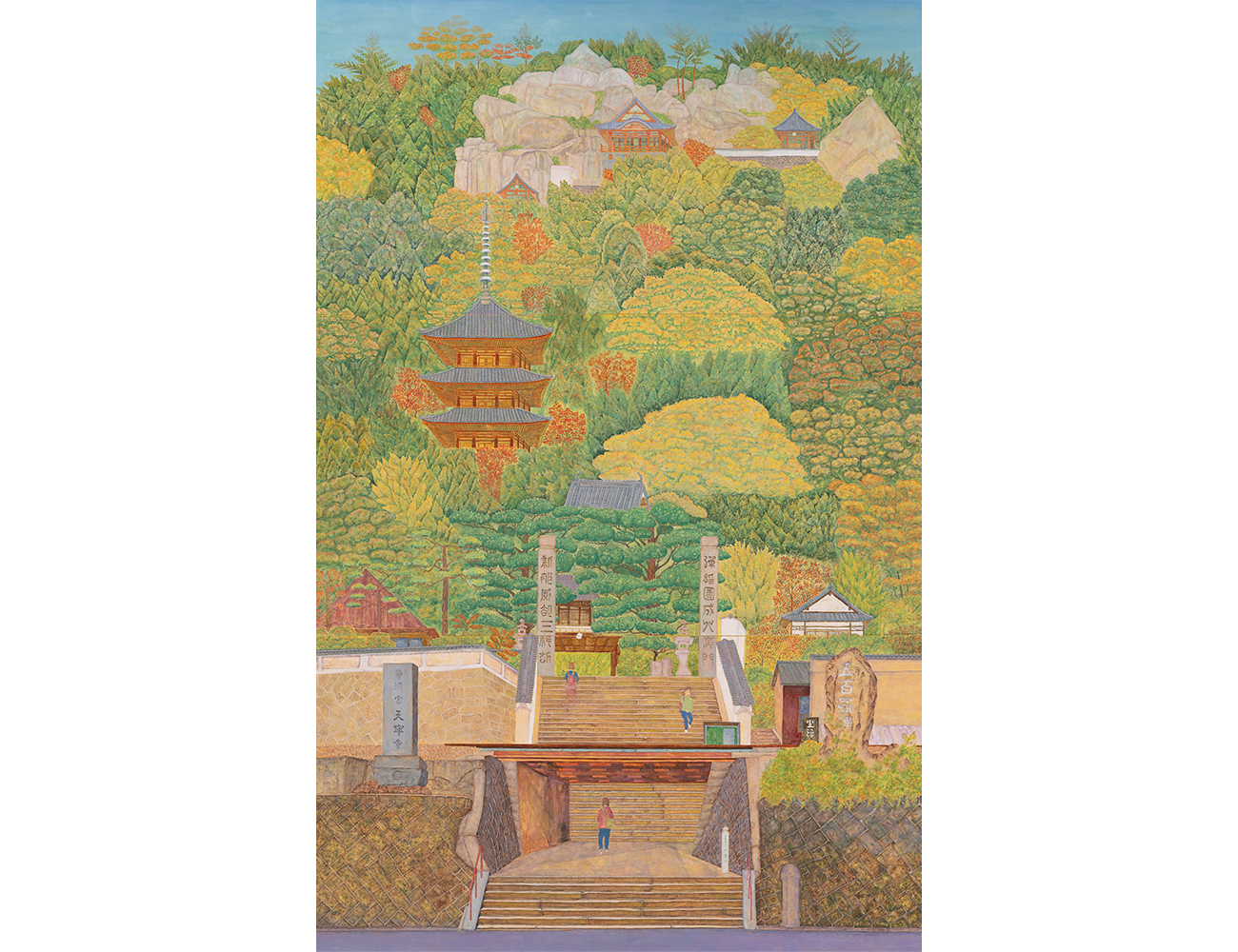 広島県尾道の街から山頂にある千光寺を見上げて秋の紅葉に染まる大宝山を描きました。歴史を重ねて受け継がれてきた自然美があり、ゆったりと時間が流れています。