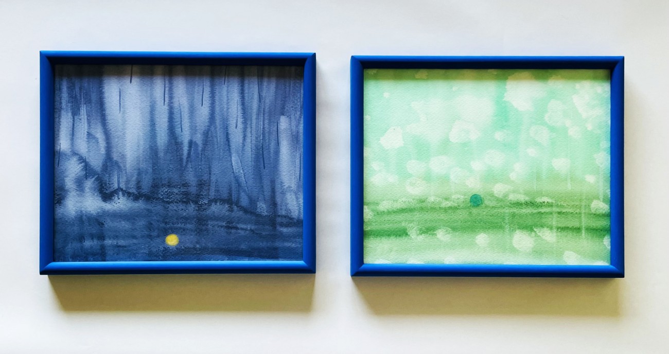 物語はわたし自身が自分を変えたくて潜在意識を勉強したことがあり、その体験をメインに雨と一緒に絵としてその想いを表現した。