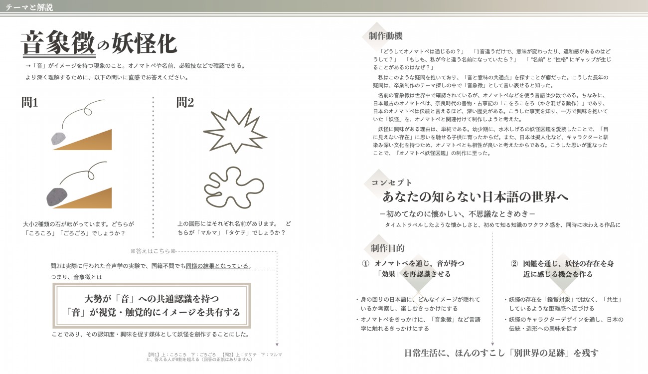 テーマは、音象徴の妖怪化です。「音象徴」と「妖怪」、2つのテーマを融合したものです。