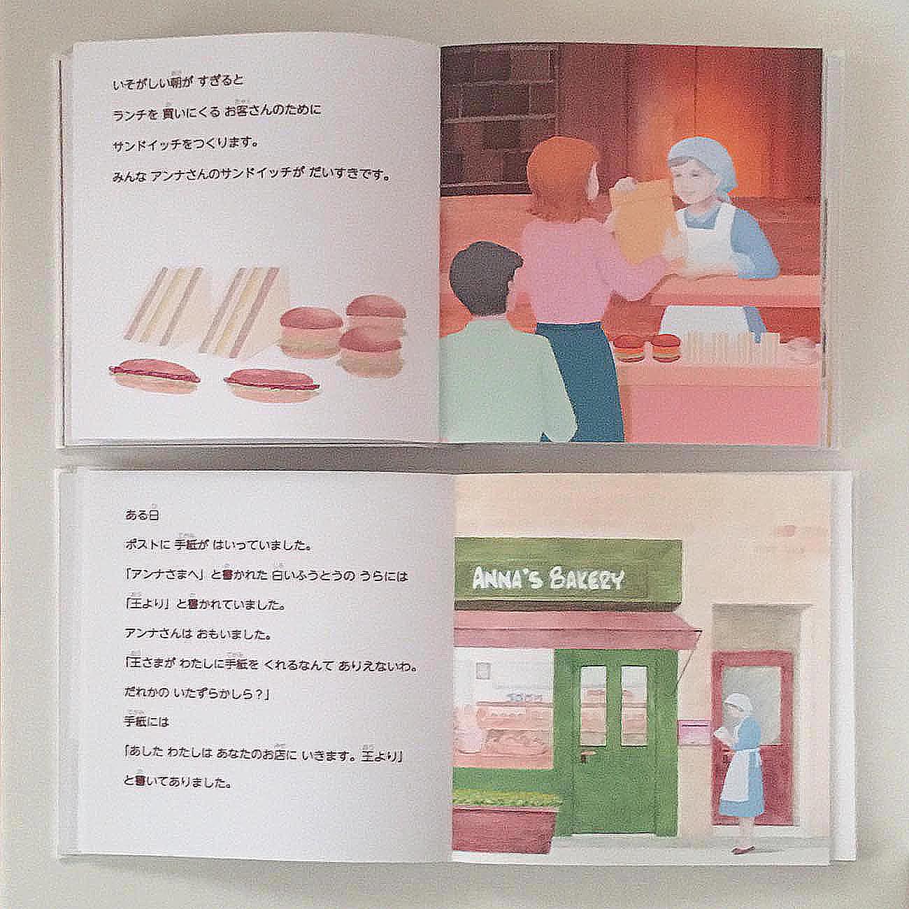 ある日、アンナさんに王様から一通の手紙が届きました。「明日あなたの店に行きます」と書かれていました。アンナは悪戯かと思いましいたが、パンを多めに作り、ケーキも準備しました。
