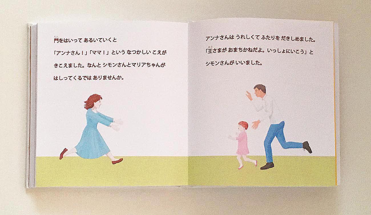 歩いているうちに、アンナさんは段々若くなっていきました。宮殿に着くと、門番が鍵を開けてくれたので入っていくと、昔、亡くなった夫と娘に再会しました。