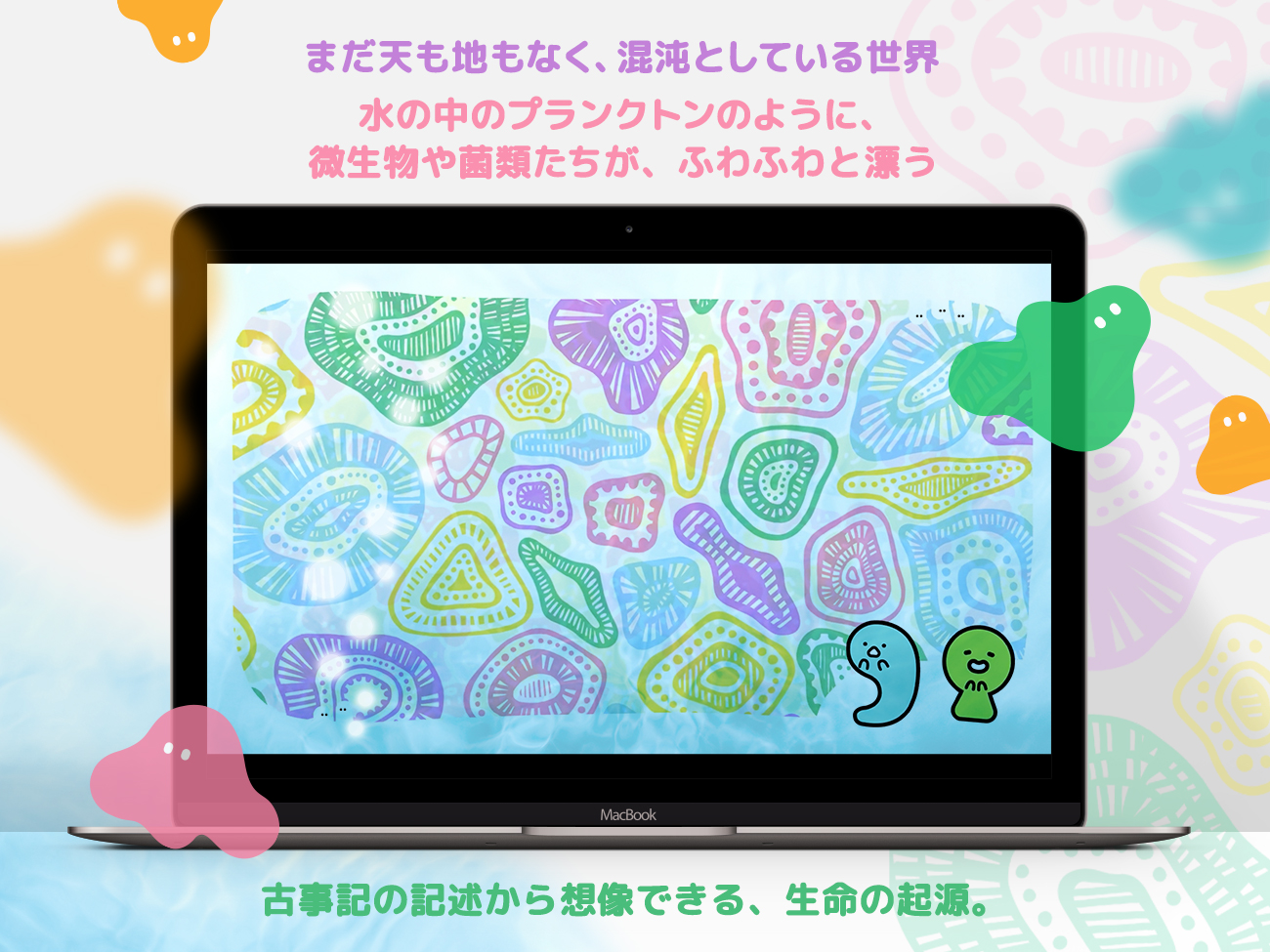 古事記の中でも、多くの人が知っているようで知らない「はじまりの部分」をピックアップして、現代も変わらない理(ことわり)や思想・文化のルーツとなる内容について、それぞれの想像力と感性で、楽しく知っていただければと思います。