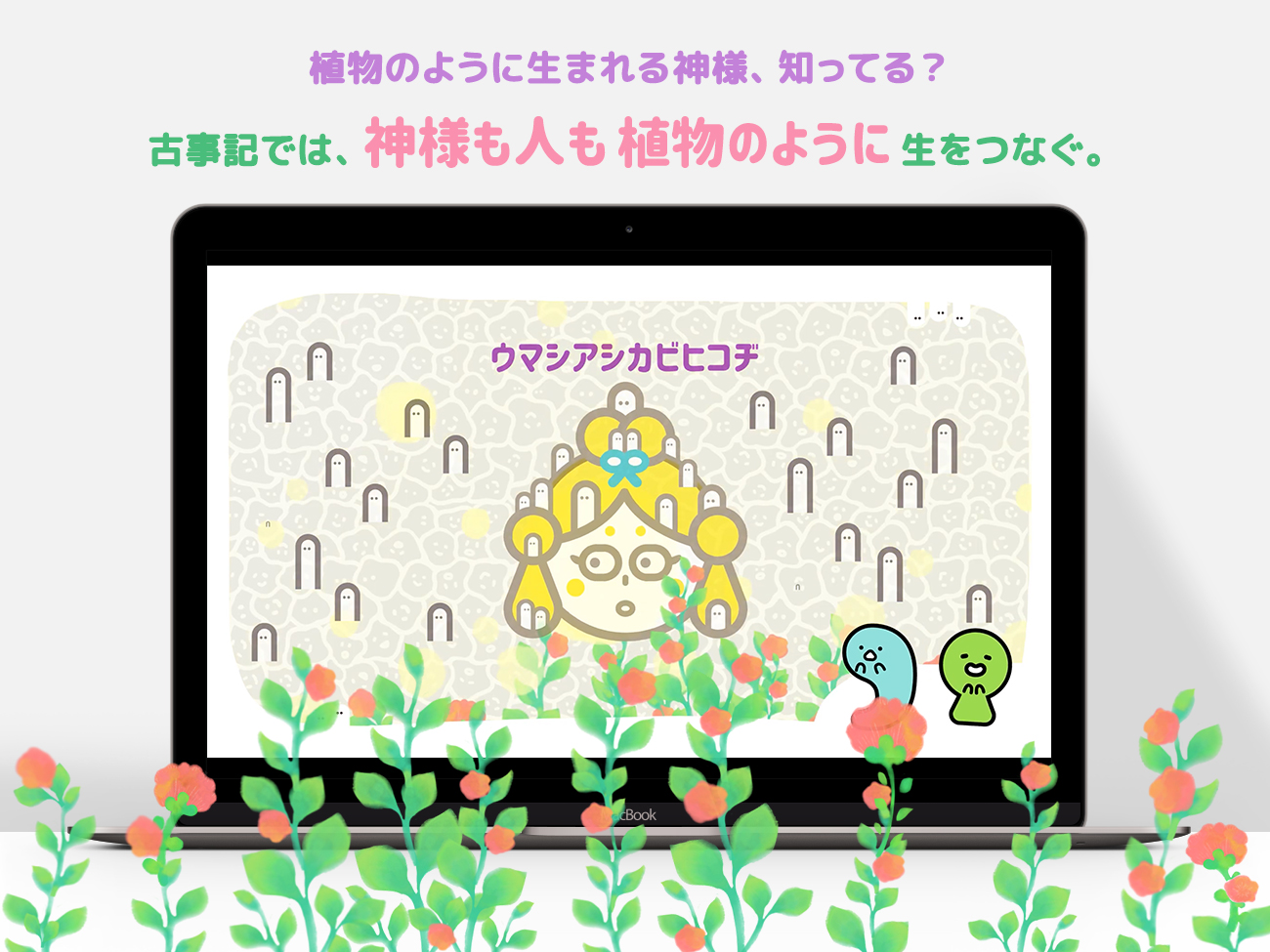 古事記による日本のはじまりは、すべてのものに等しく生命が見出され、人も神も同じように生まれ、植物のように生を繋いでゆきます。