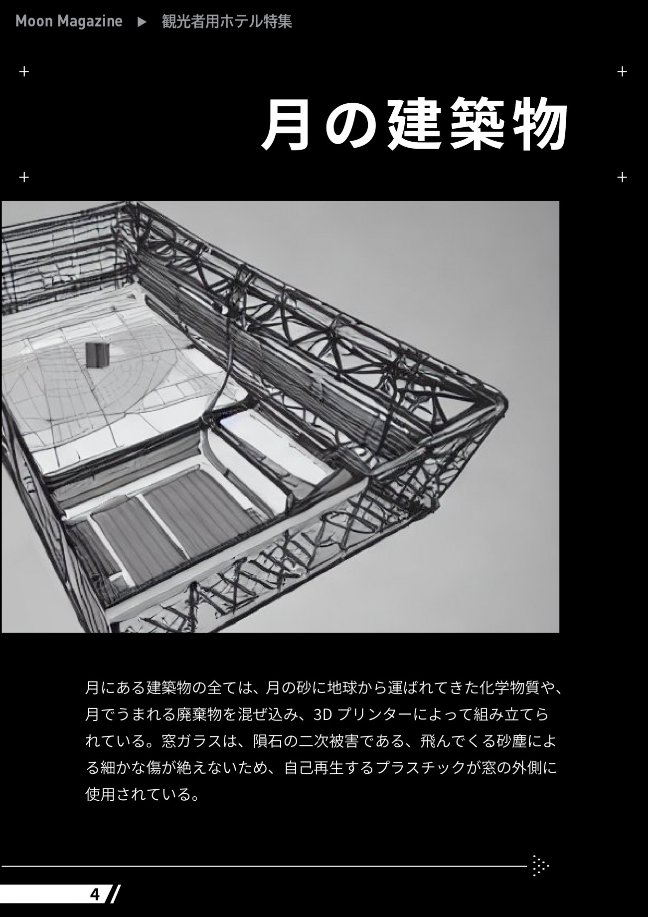 もしも月にホテルができたらという、フィクションの世界ででてくるであろう「あるある」を作りました。