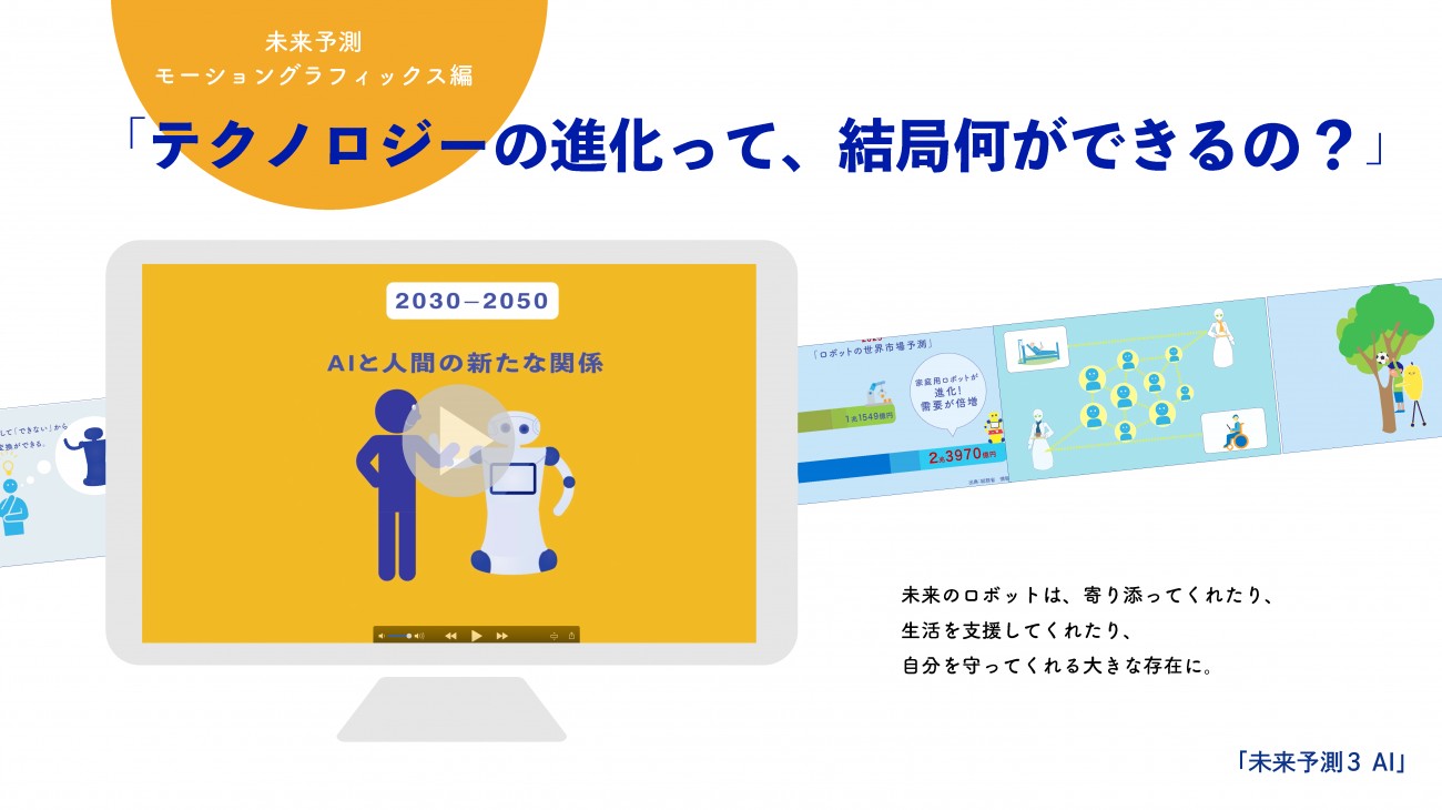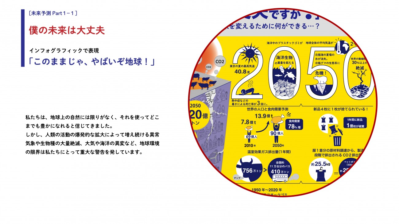 今の常識に縛られず、これからの時代にあった自分の可能性をグーンと広げる、夢を描くことにつなげていくことができる それがこの作品のテーマ「未来予測」です。