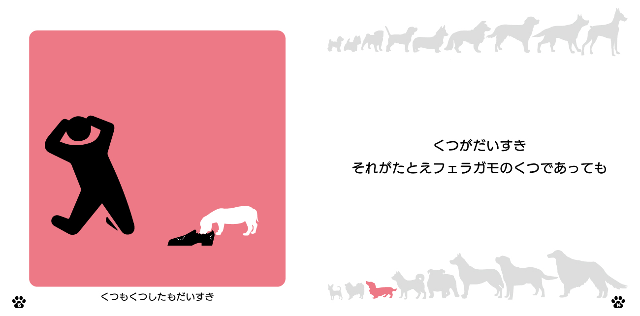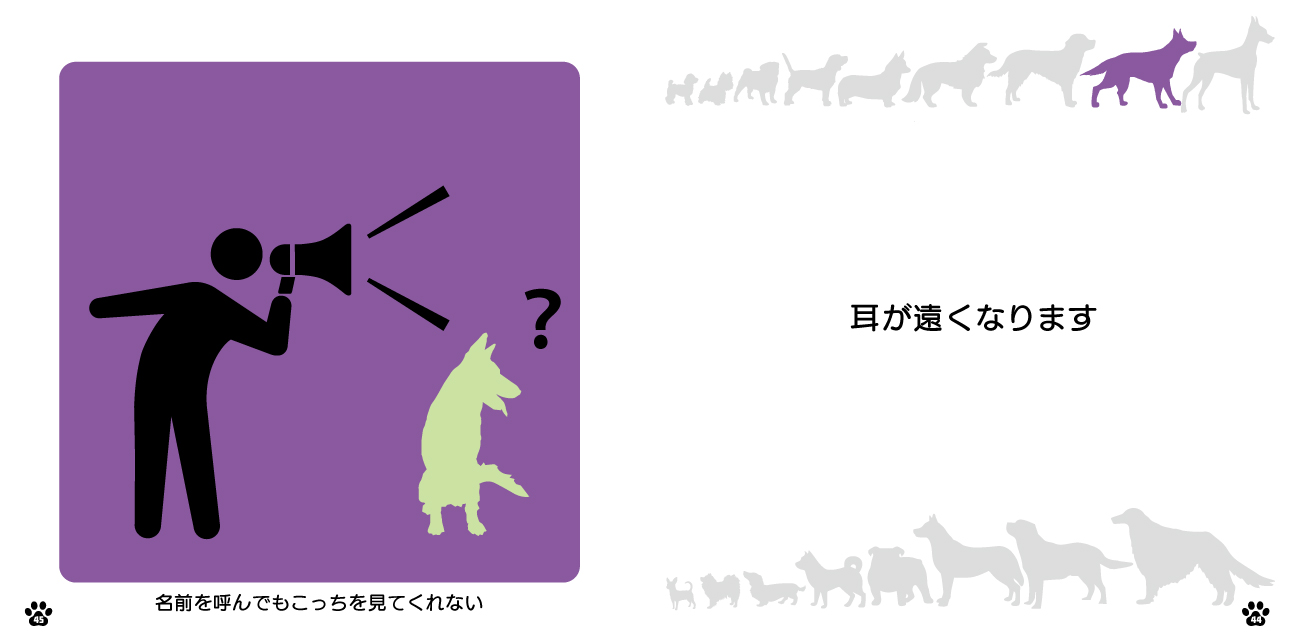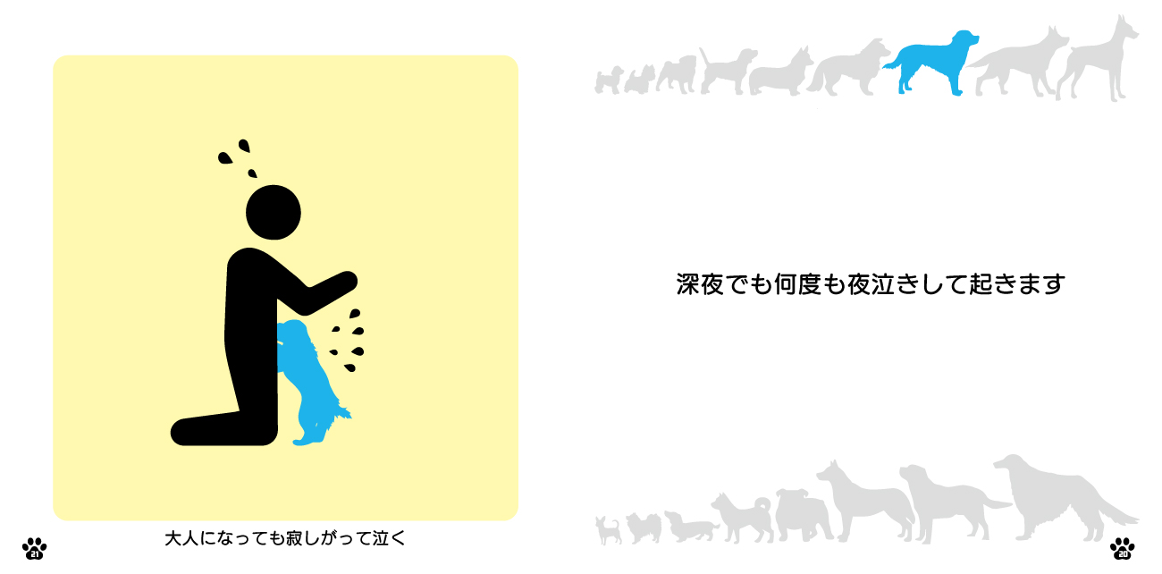 犬と暮らしていく中で起こる楽しいだけではなく、苦労や大変だったエピソードなどを紹介・表現し、お迎え前・幼犬期・青年期・老年期それぞれで紹介。