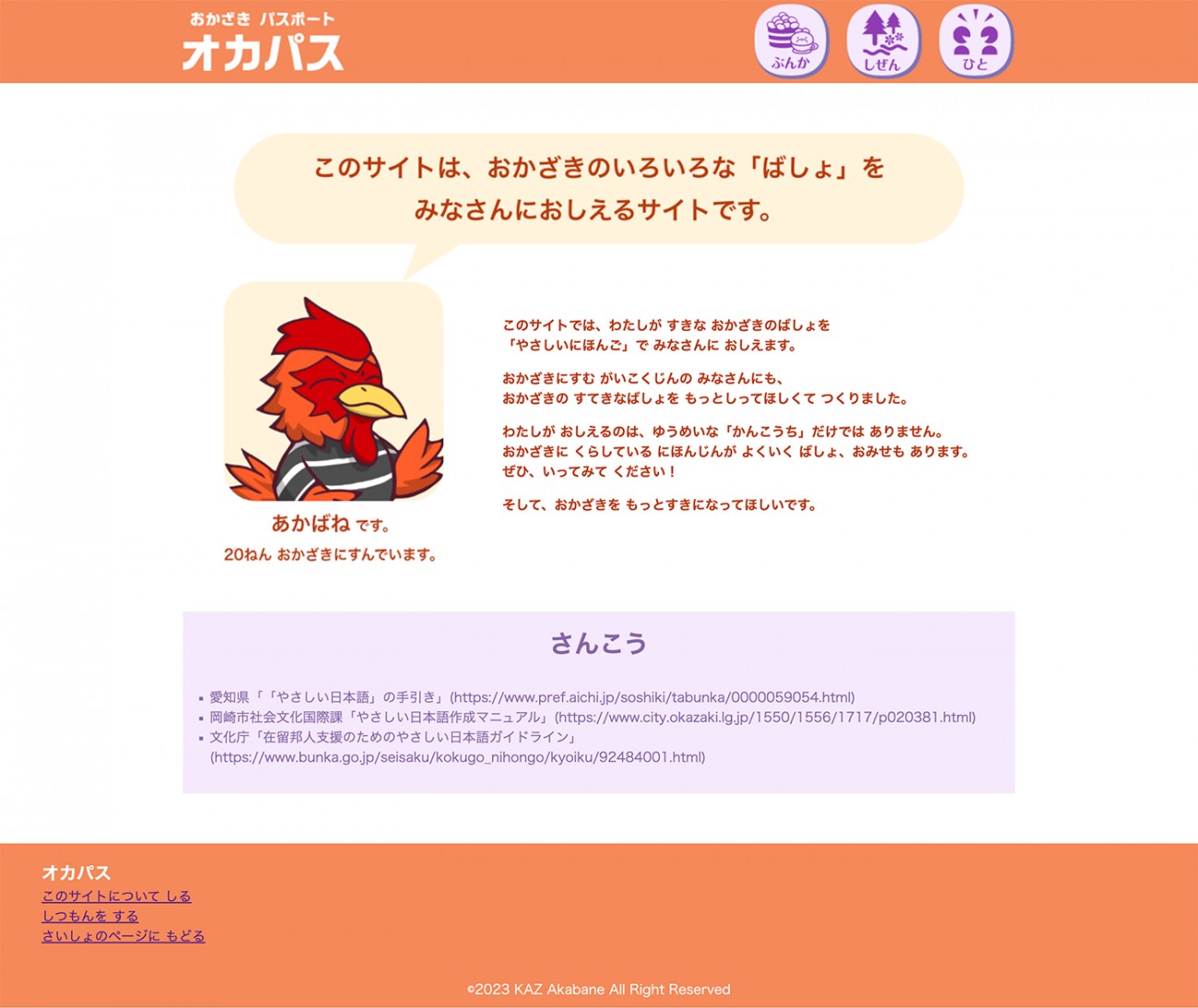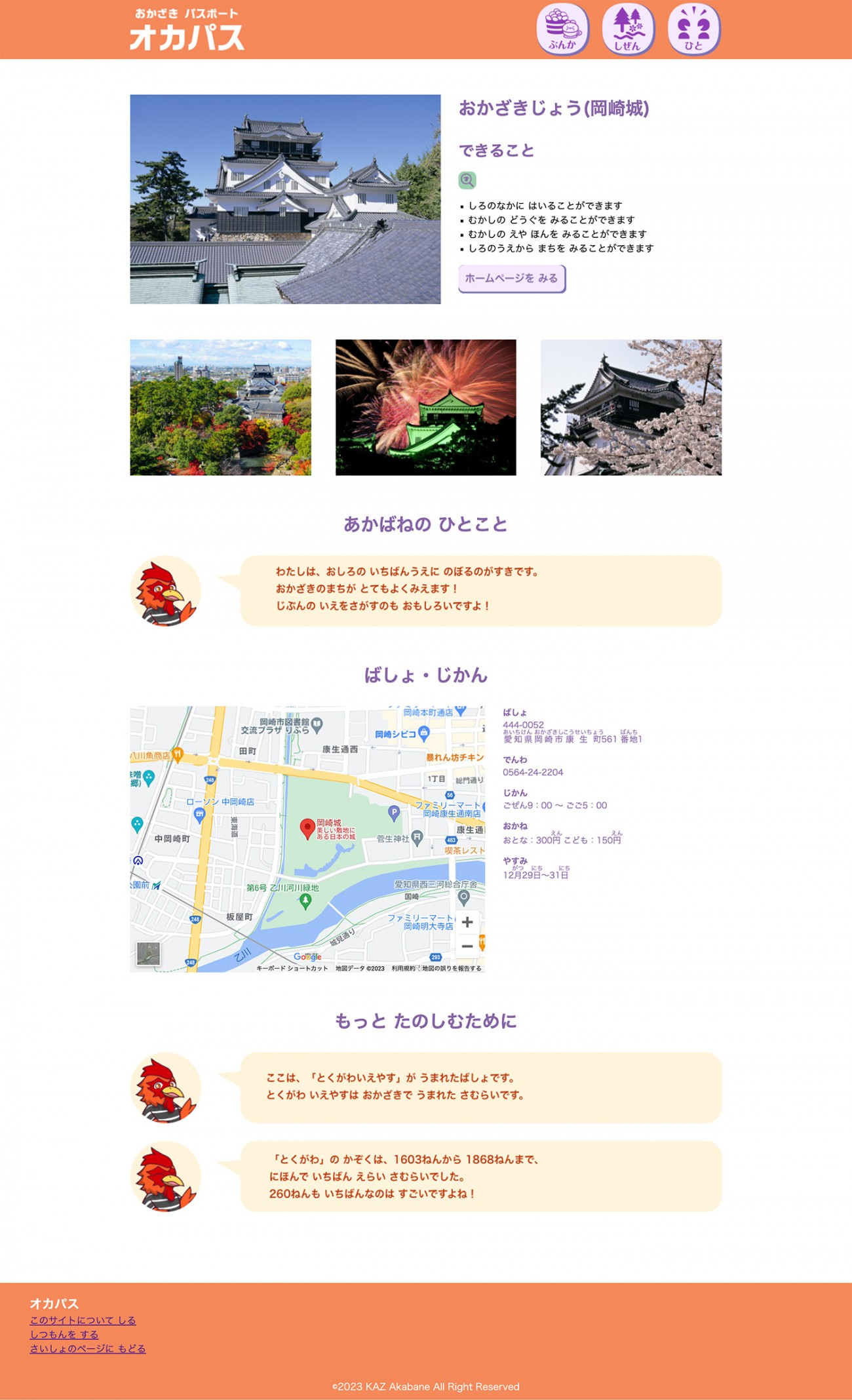 岡崎市のおでかけ情報を、「やさしい日本語」で発信するWebページです。