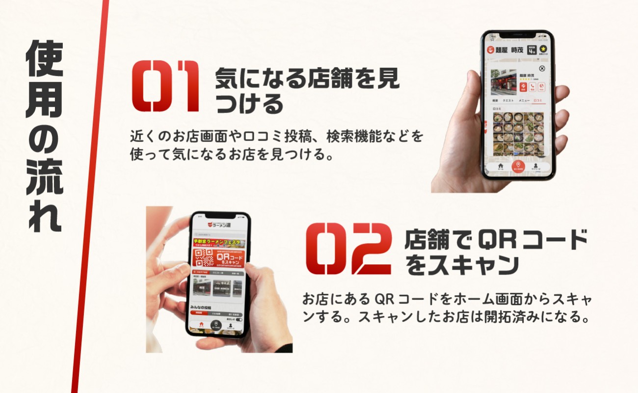 このアプリでラーメン屋を新規開拓することがラーメン屋に訪れる動機となり、結果的にラーメン業界全体の活性化に繋がると考えています。
