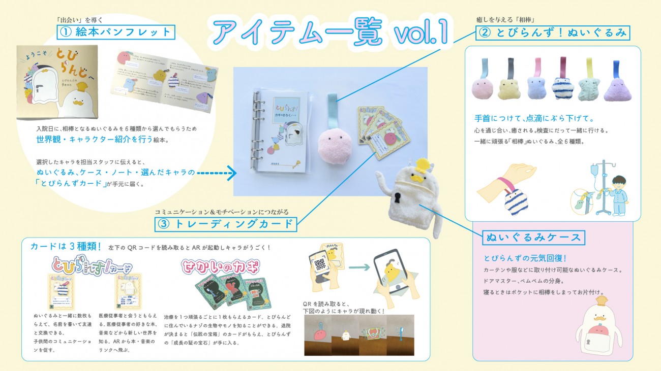 入院する子どもたちの元には、見習いのとびらんずが派遣されて相棒となり、治療を乗り越えながら共に成長していきます。とびらんずは、子どもたちの頑張りに応じて「せかいのカギ」を探し、ARを通してとびらんどを覗かせてくれるほか、「とびらんずカード」で働く大人たちの「心のトビラ」を覗かせてくれるなど、コミュニケーションのお手伝いをしながら、心のケアをしてくれるのです。