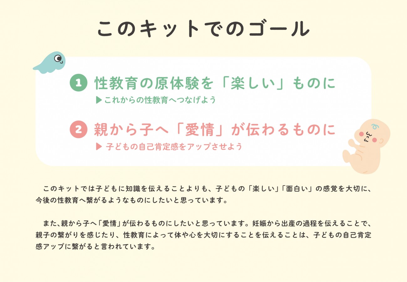 そこで苦手意識を持つ親も、子どもと一緒に楽しみながら学べるような、性教育のスターターキットを作りたいと思いました。