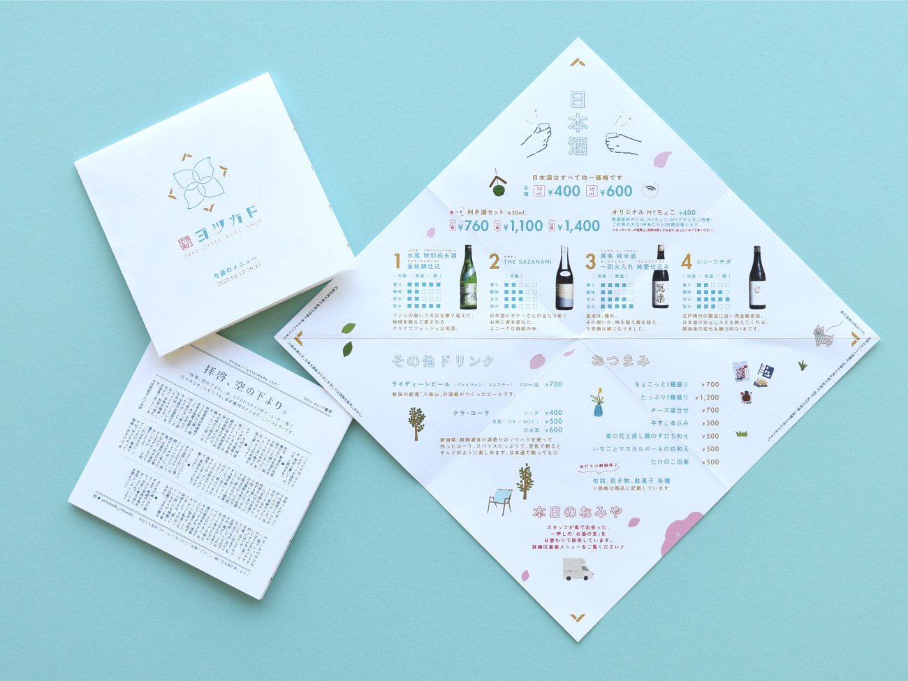 ヨツカドという架空の酒屋のプロモーションデザインを行いました。