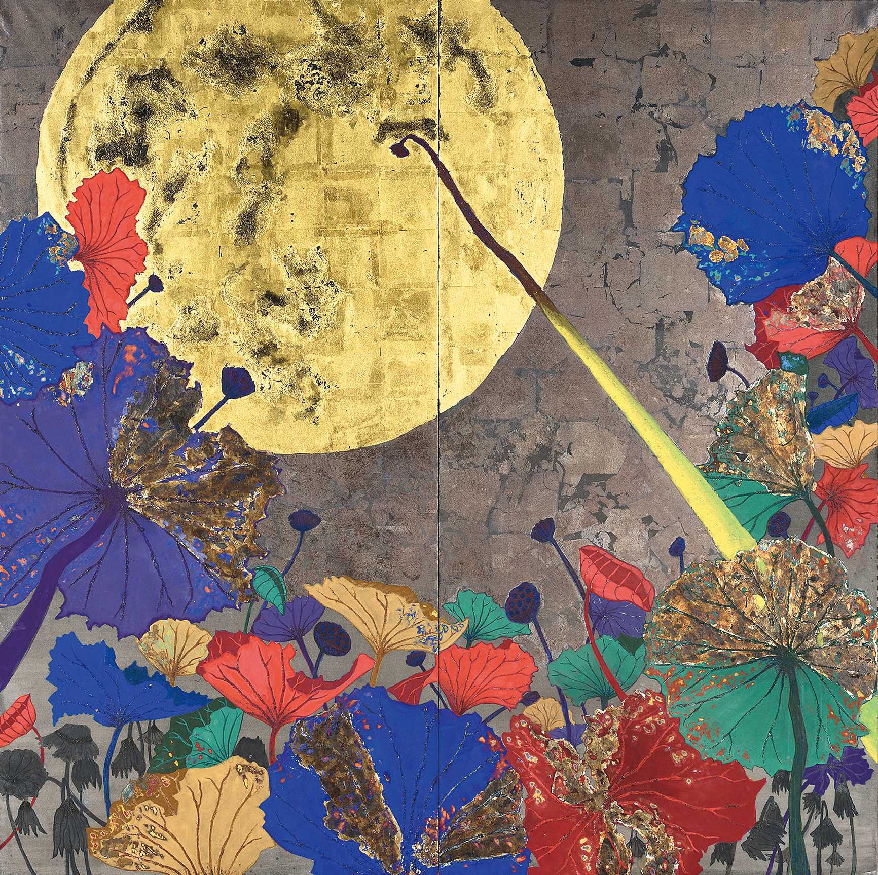 紙本/岩絵具, 膠