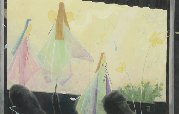 薄美濃紙/岩絵具, 水干絵具, 墨, 膠, 金泥