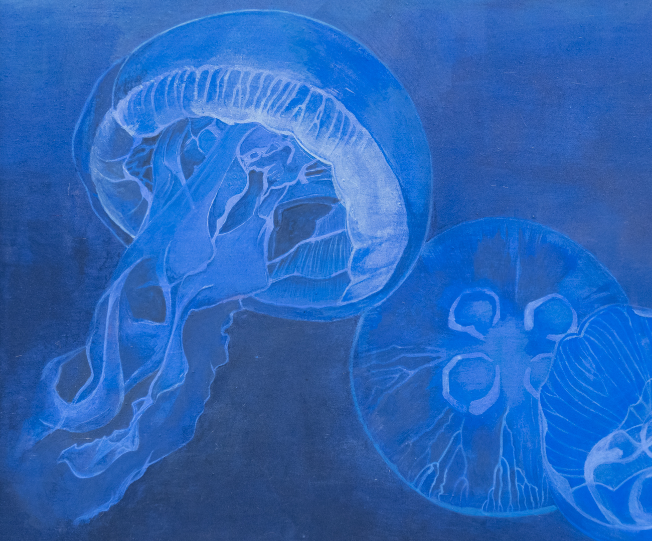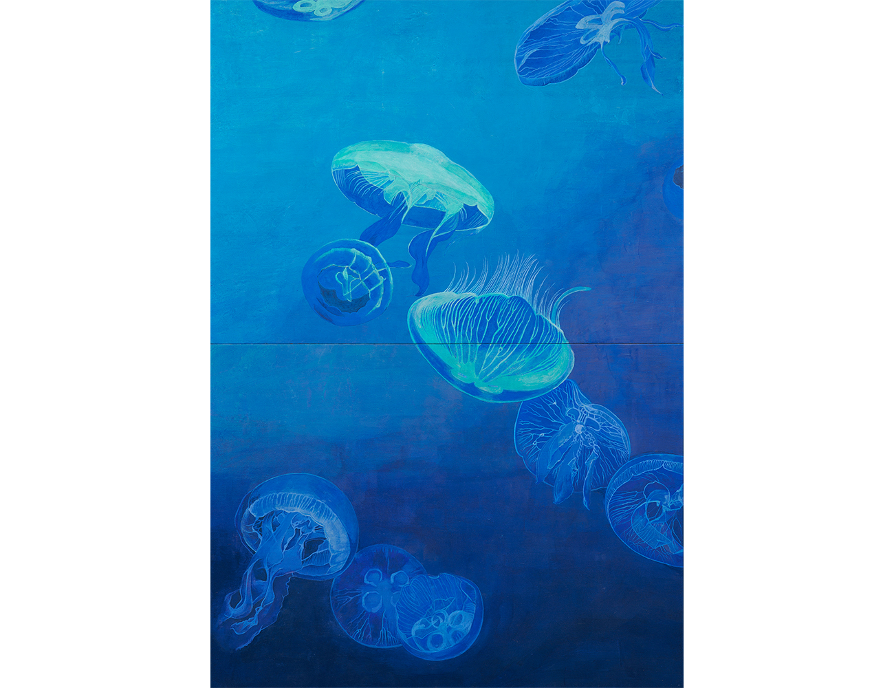 近くの水族館で対象を探してる中、クラゲの水槽の前で足がとまり、マイペースに漂ってる姿に見入っていました。