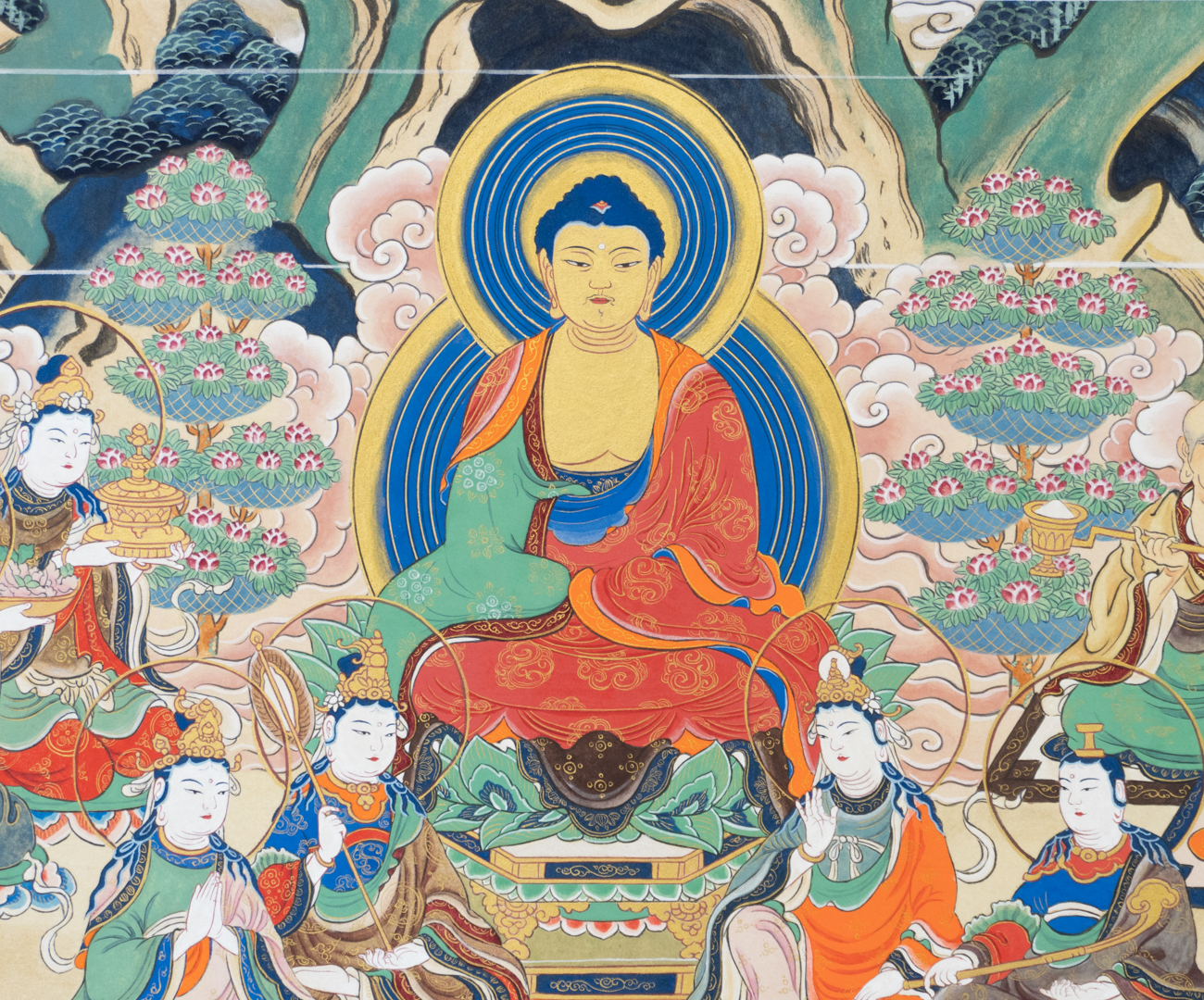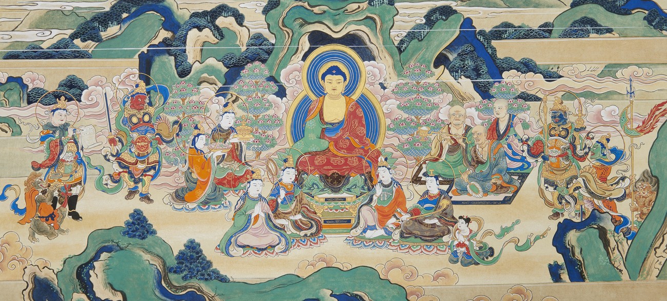 たくさんある絵巻物の中から絵仏師が手掛けたものを選び、上巻の巻頭に当たる【霊鷲山で説法をする釈迦とそれを聞く四聖の菩薩たち】の一部を模写しました。在学中の総まとめと、これからの第一歩となる卒業制作になったと思います。せっかくなので表装も自分でやります。学びへの挑戦とは何かを改めて感じた作品となりました。