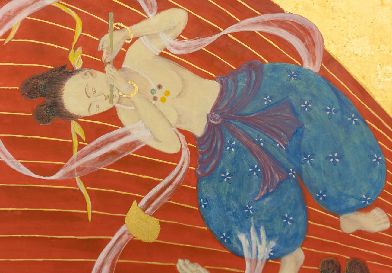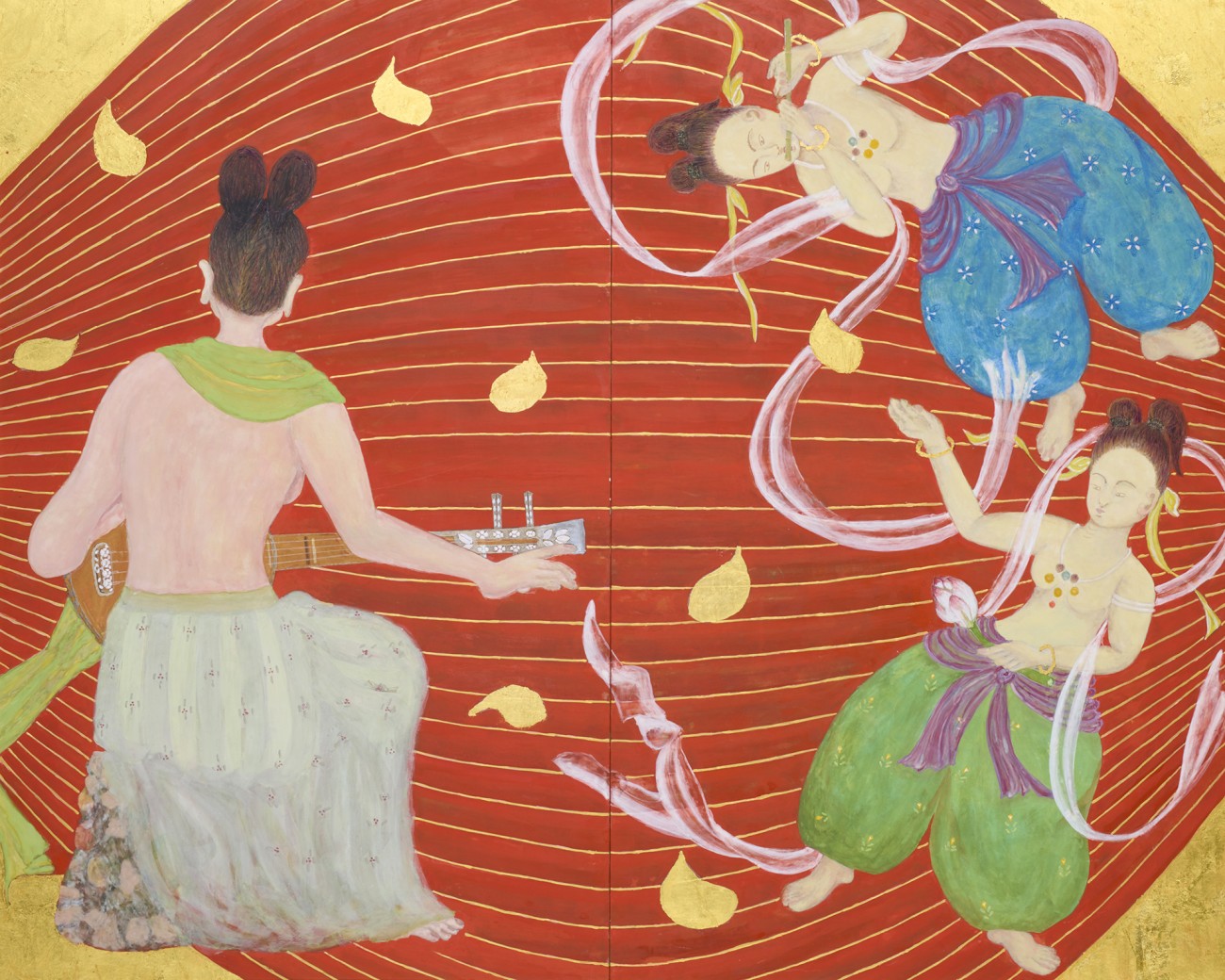 幼児期に昔話に登場するような姫には興味をそそられ、真似をして遊んだことである。奈良絵本「竹とり」を拝見した。古人は「万葉集」などにも記され、その背景から竹取物語を通して育む感覚・感性を表現していきたいと考え、本卒業制作のテーマの課題として位置づけて調査・研究していくこととし、神仙思想・仏教的な面も考慮した。