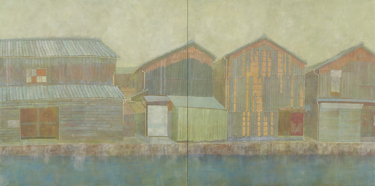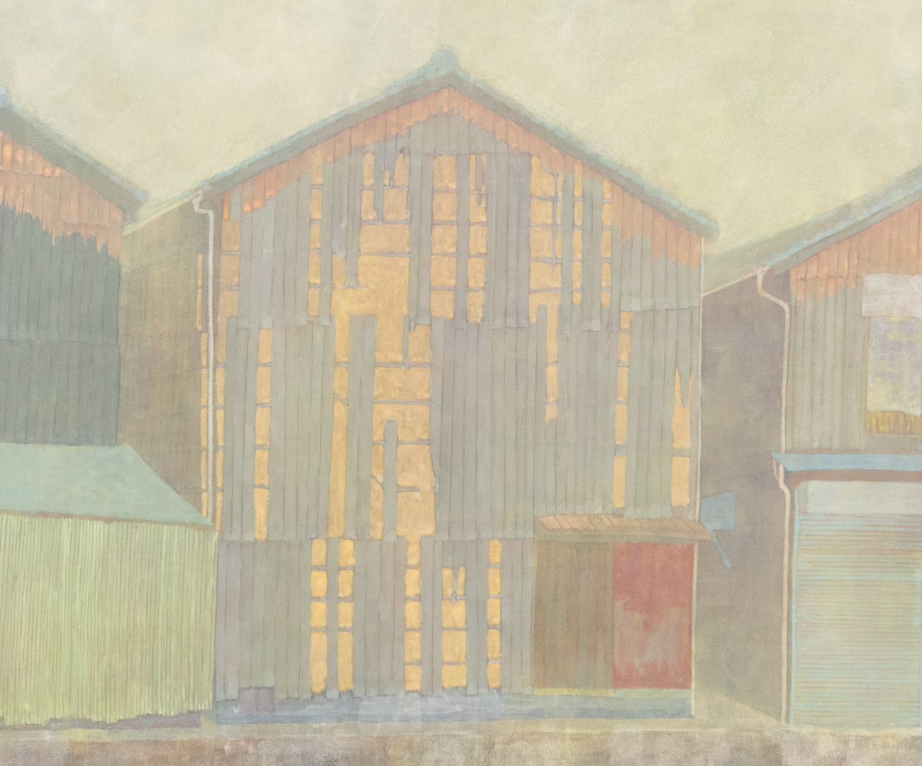 朝鮮通信使の往来で栄えた御手洗という地を目指し小さな島に出かけたが目的地前の道沿いに並ぶ大きな建物が気になりスケッチを始めた。何度か通う内にここはみかん倉庫でかつては海に面し農船でみかんを運び出していたことを聞いた。黄金の島と誇ったその象徴でもあるみかん倉庫が今は所在なく立ち尽くし、そして呼んでくれたような気がした。