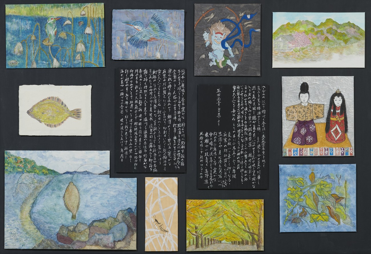 紙本/岩絵具, 水干絵具, 墨, 膠, 銀箔